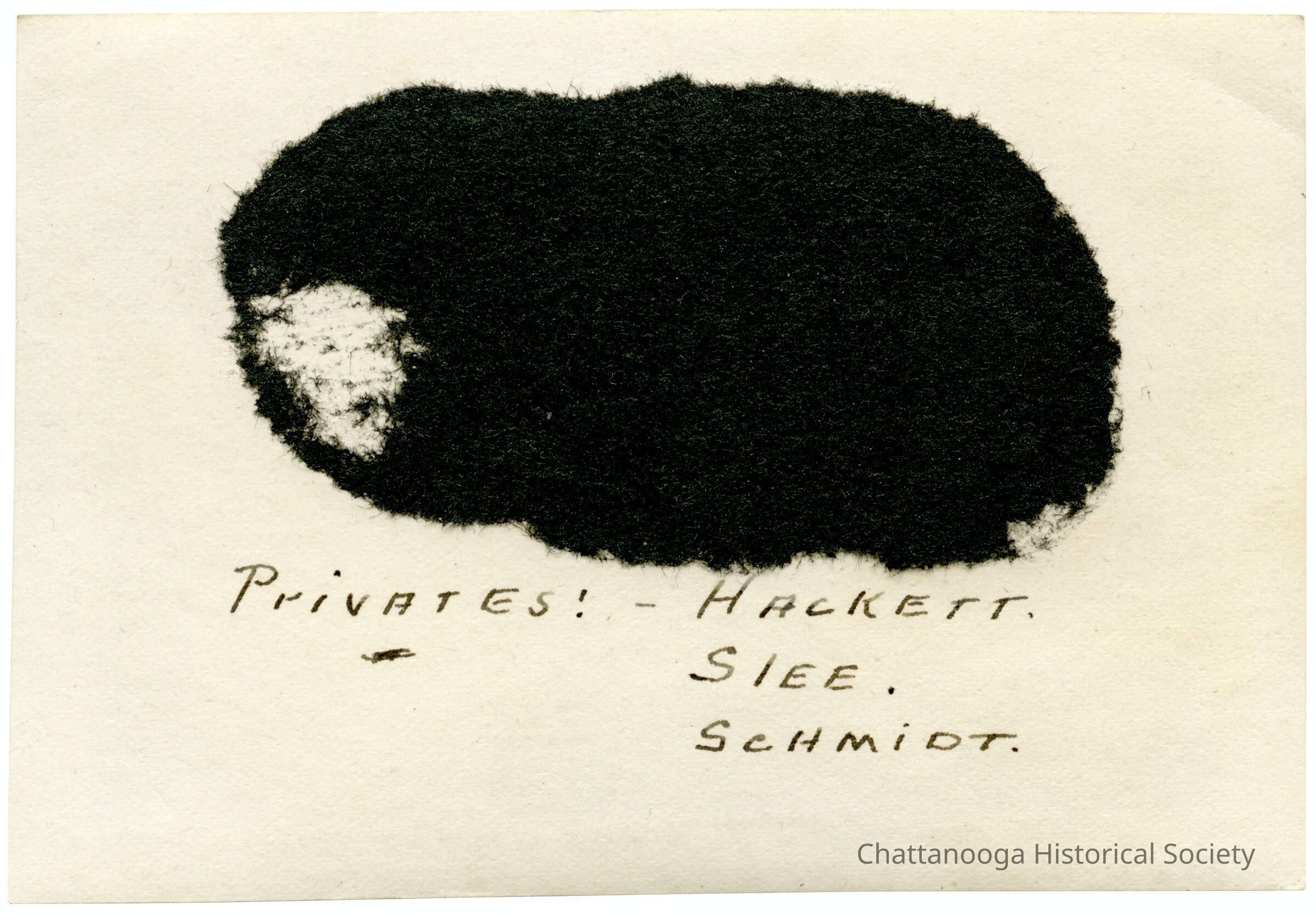 The men are identified on the reverse as Privates Hackett, Slee, and Schmidt.Photograph Details