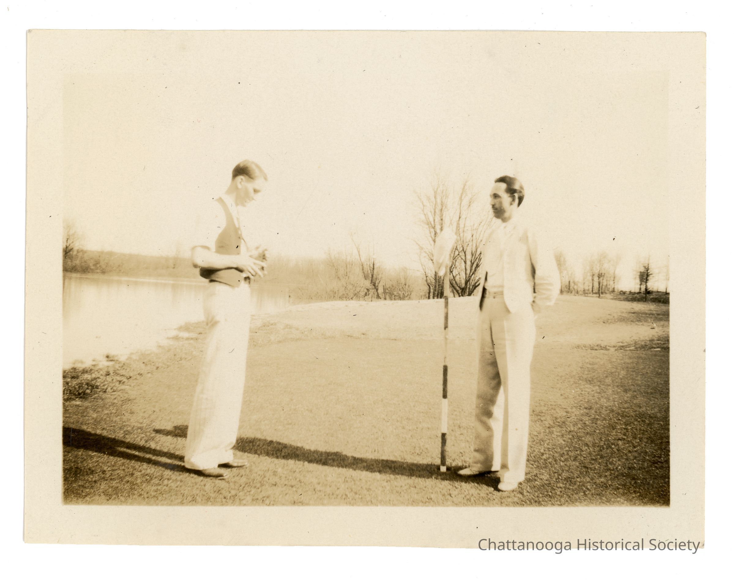 White, post bound album with black pages. The photographs date to the early 1920s to the 1940s. Photographs include: