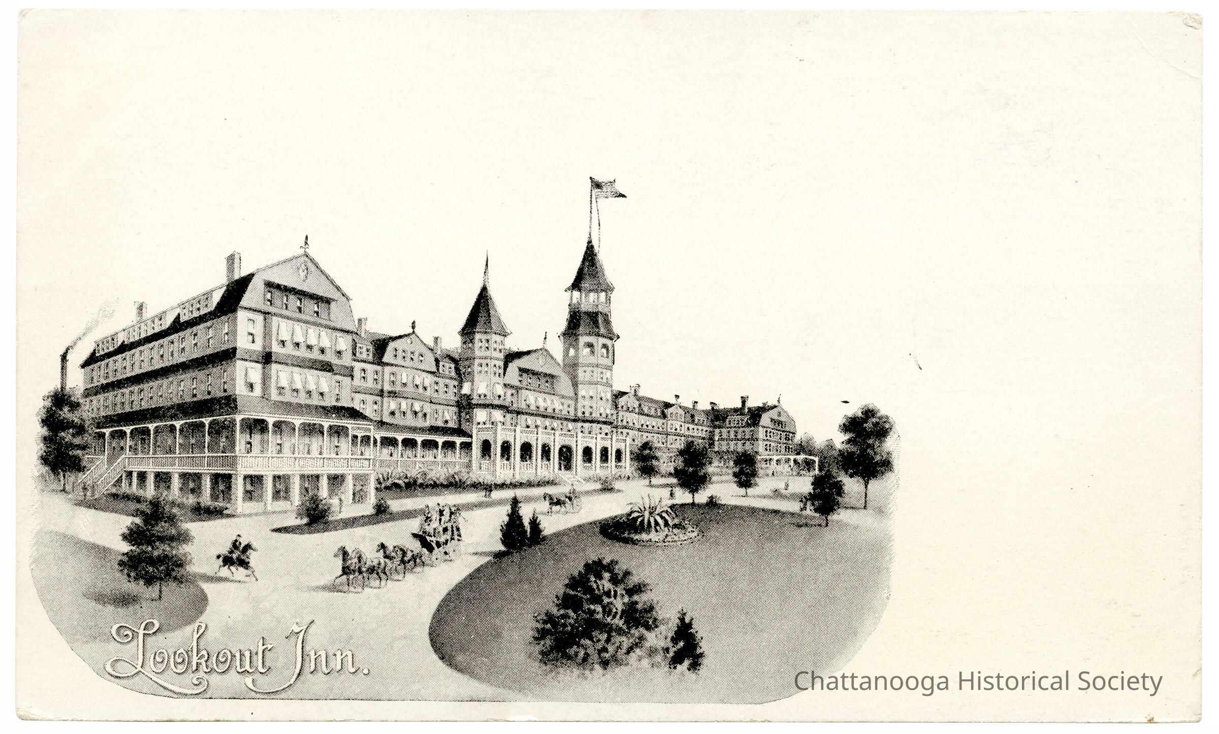 The Lookout Inn opened in 1890 and was situated just above the top station of the existing Incline No. 2 on the eastern face of Lookout Mountain, Tennessee. The steam-powered incline was built as a direct route to the hotel and a connection to the Chattanooga & Lookout Mountain Railway.