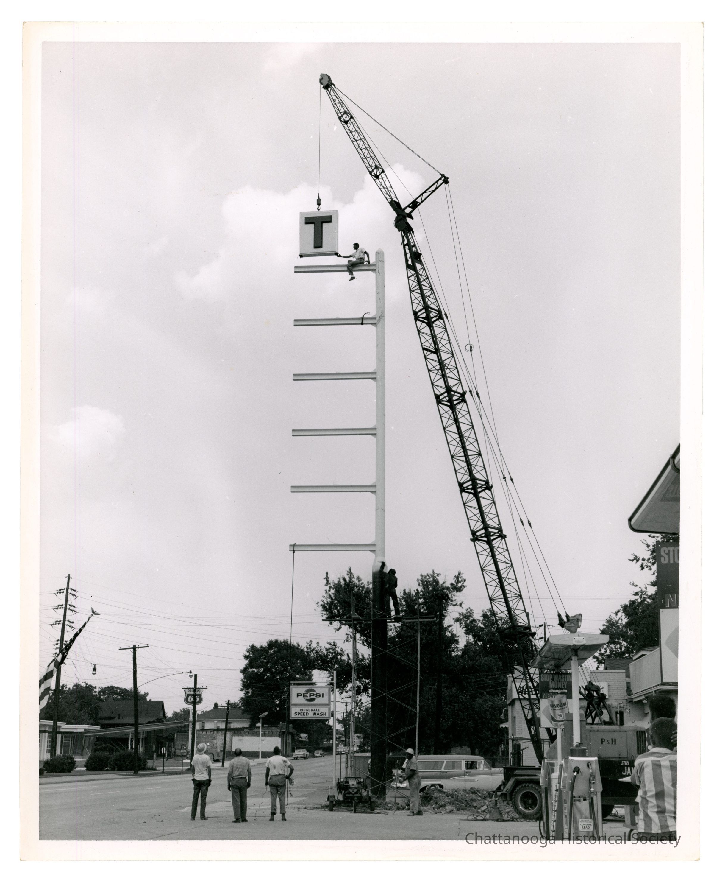 Black and white photograph taken from downtown Chattanooga looking at Lookout Mountain and the Incline No. 2. The photograph is labeled "'Incline" Lookout Mountain Chattanooga, Tenn. Sun. May 17 1936"Date(s) of Creation