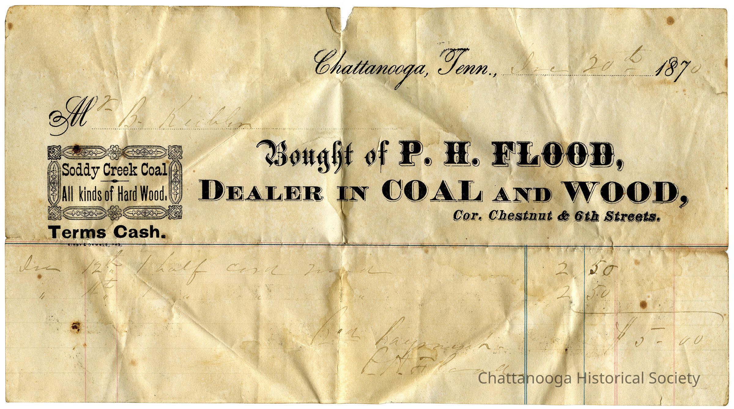 A receipt from the P. H. Flood, Dealer in Coal and Wood, Cor. Chestnut & 6th Streets, advertising Soddy Creek Coal.Archive Items Details