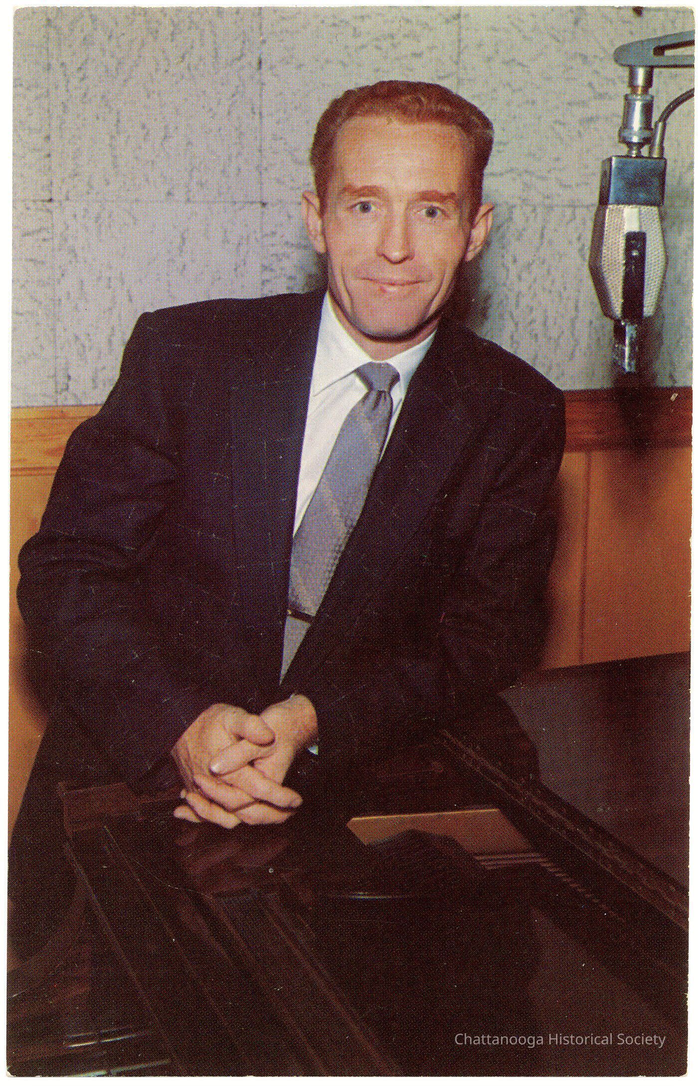 A postcard with the front showing f photograph of WAPO radio personality, "Happy Herbert," advertising Champion's Valley Mills Store. The rear reads "Happy Herbert and me hope you'll come in often to CHAMPION'S VALLEY MILLS STORE. Better quality Clothes for Men and Boys. We also invite you to listen Daily to WAPO-Radio for Uncle Bud and Red Brown."Subject Person/Organization