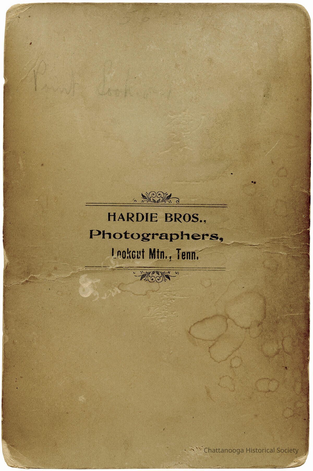 The rear of the card features a stamp that reads "Hardie Bros., Photographers, Lookout Mtn., Tenn."Photograph Details
