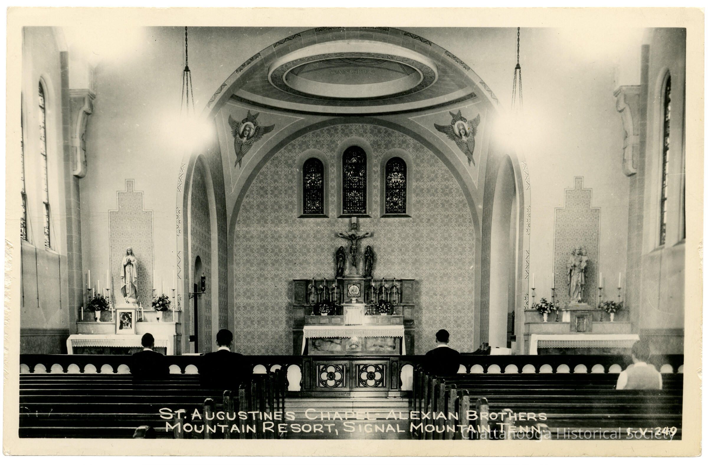 A postcard with the front showing St. Augustine’s Chapel at the Alexian Brothers Mountain Resort in Signal Mountain, Tennessee. (Formally the Signal Mountain Inn)Subject Person/Organization