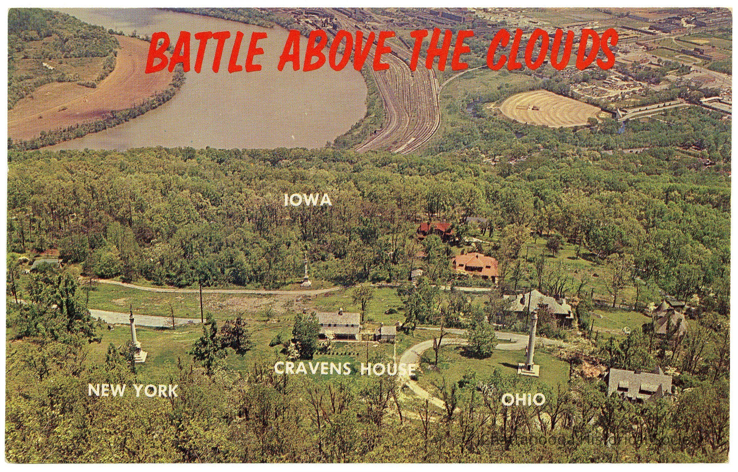 Lookout Mtn, Tenn. The Cravens House, Confederate Headquarters, and Battlefield of "The Battle Above the Clouds" showing monuments and markers of States whose men fought and died there.Subject