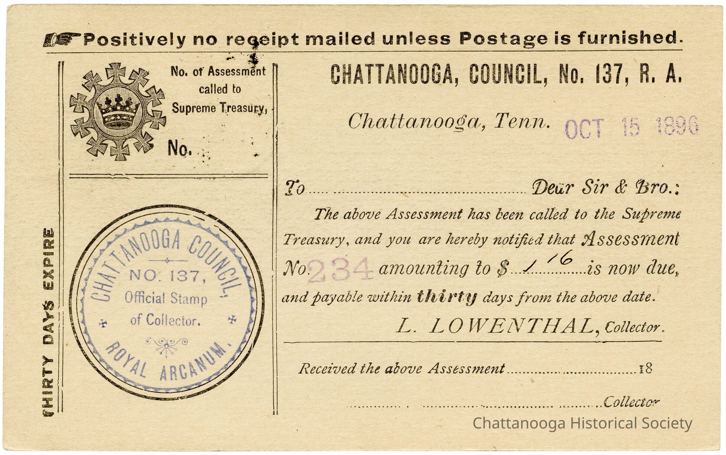 Chattanooga, Council, No. 137. R.A.Entry/Object ID