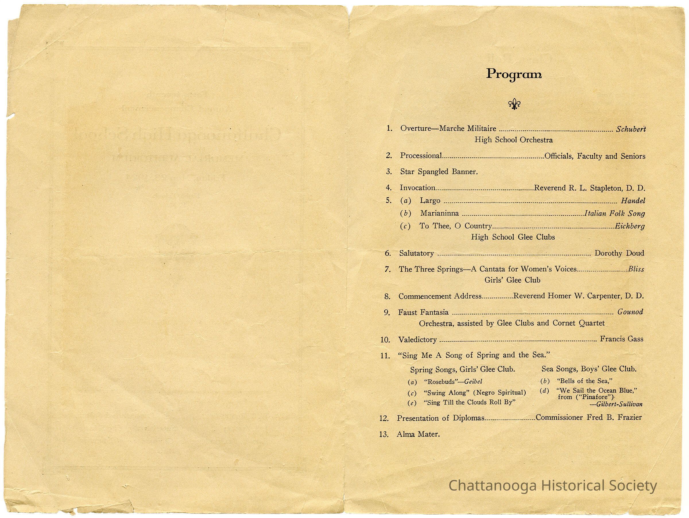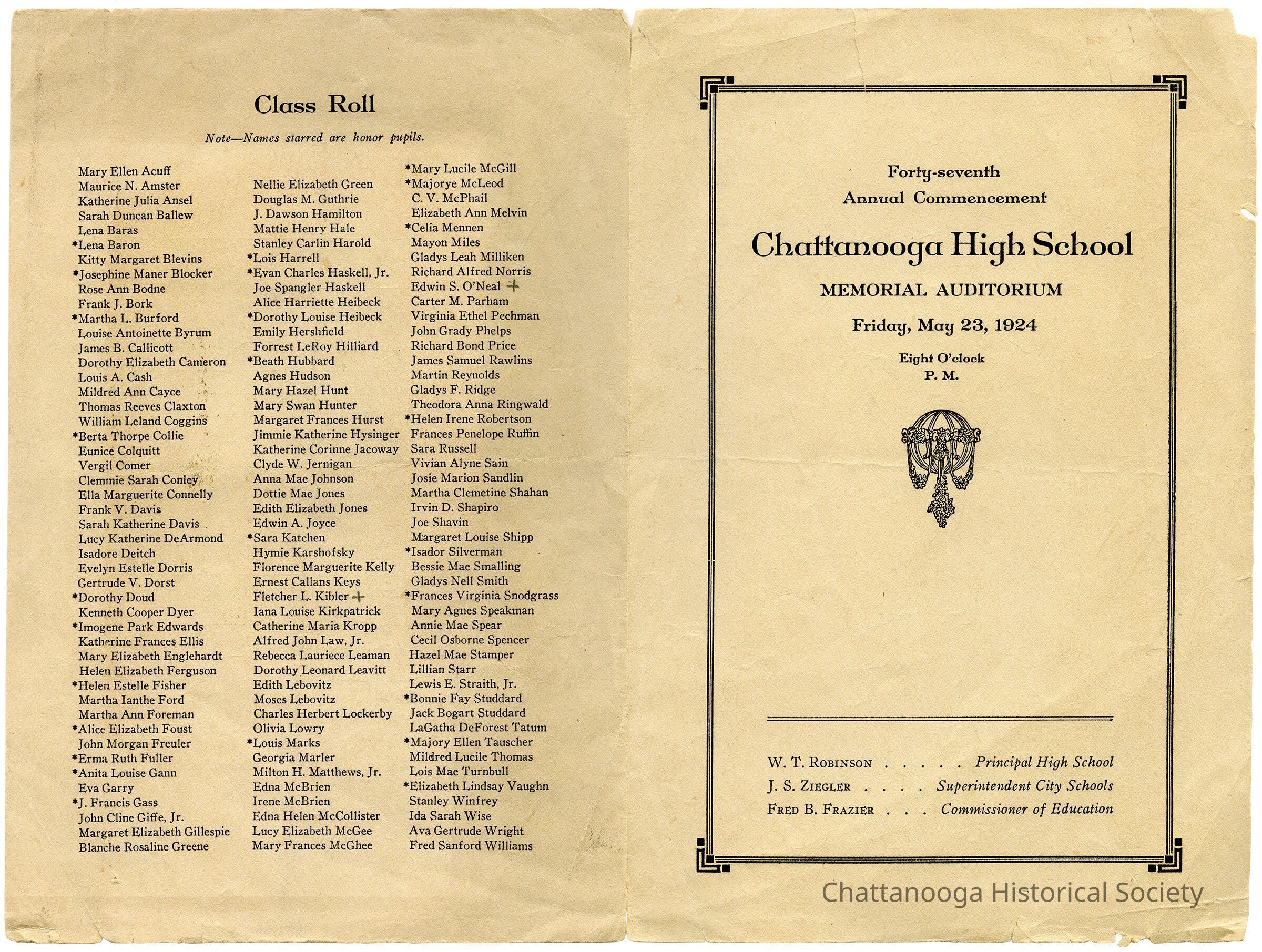 A program for the 1924 graduating class of Chattanooga High School.