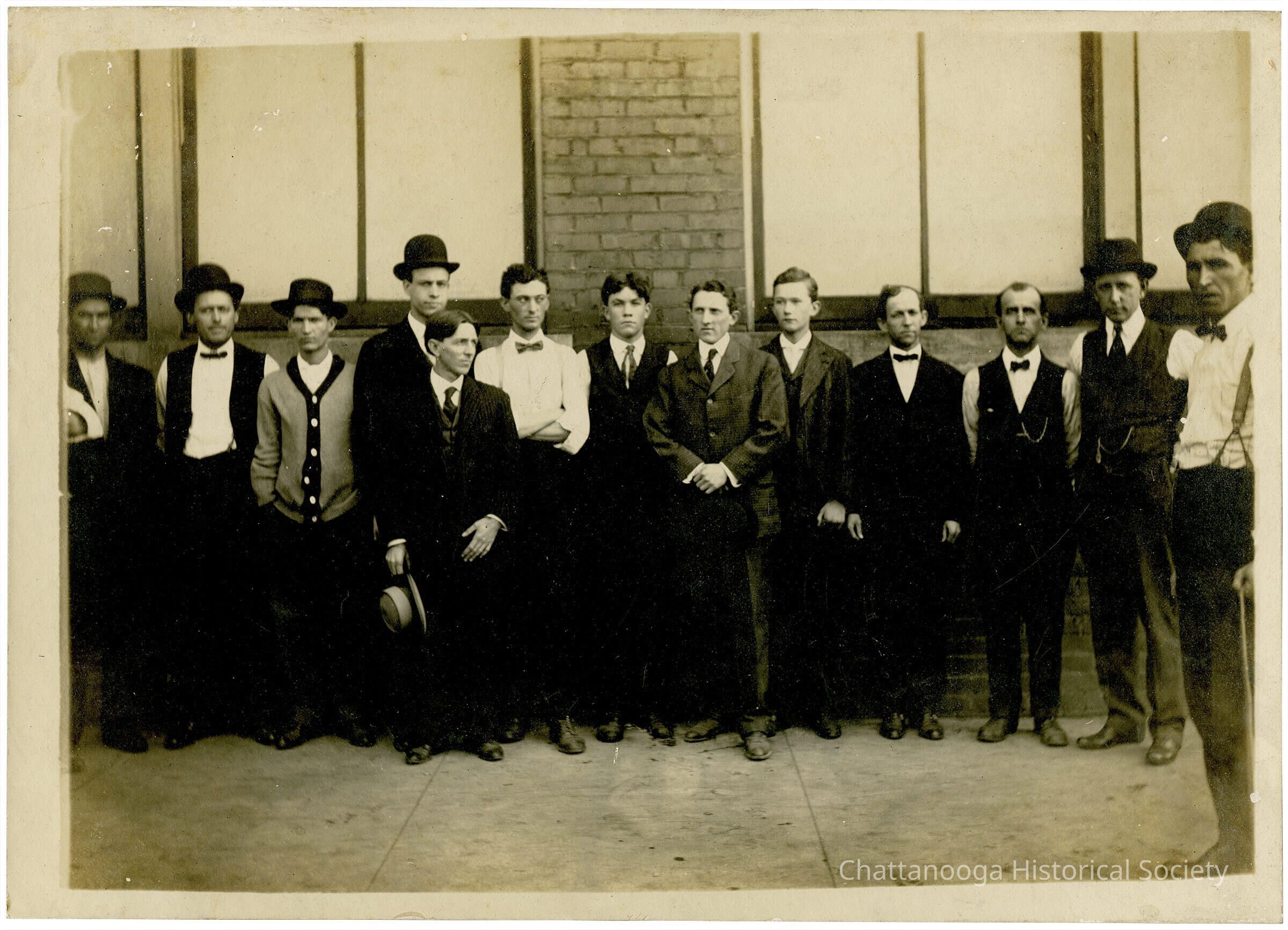 Duplicate of 2020.452.003 but without the numbering. The rear reads "#4 from left is Judd L. Ledford in front of Chattanooga Steam Laundry about 1909"Date(s) of Creation