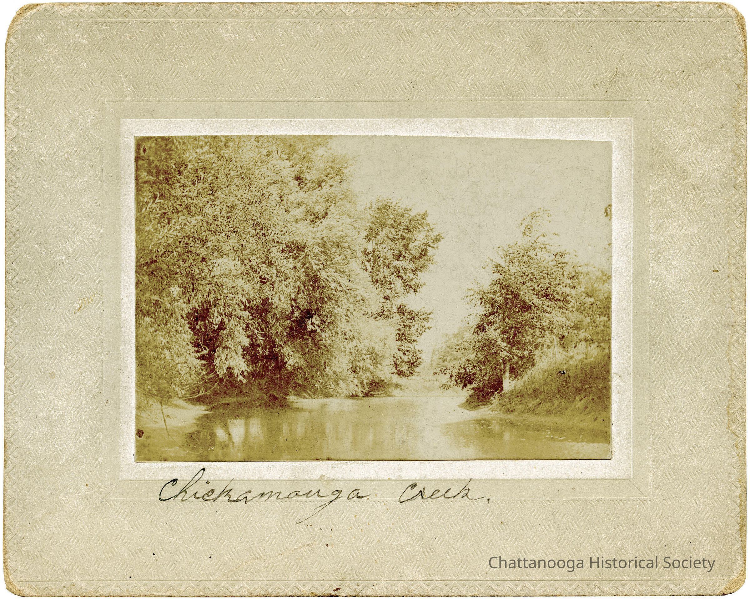 Black and white photograph pasted on card of Chickamauga Creek in 2898.Photograph Details