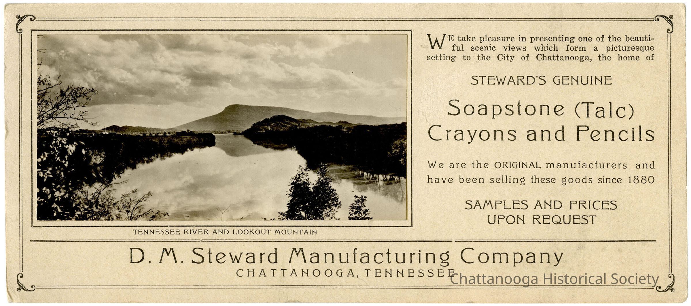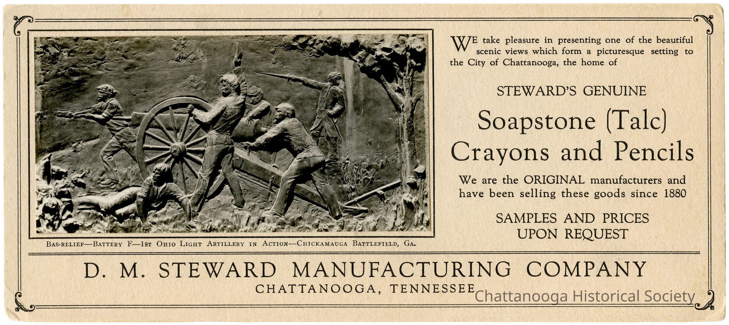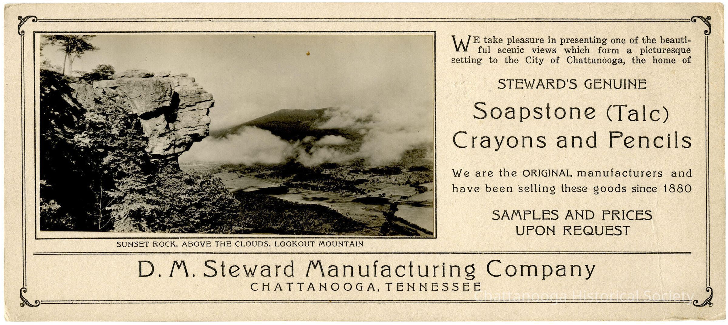 Set of four ink blotters with photographs and advertising on the recto for the D. M. Steward Manufacturing Company supplying soapstone (talc) crayons and pencils.
