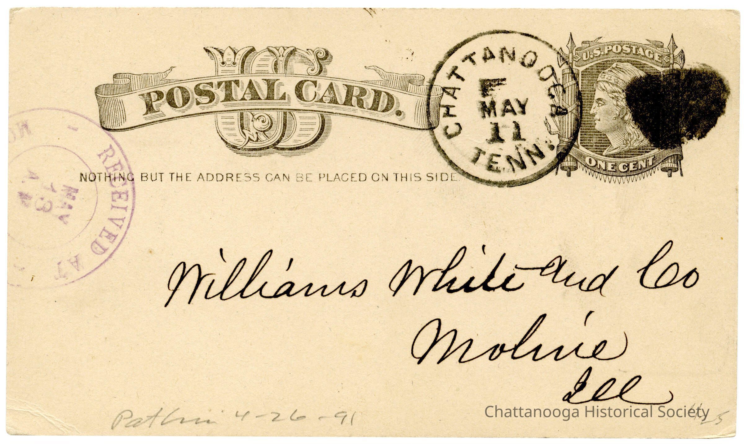 A postal card from The Tradesman Publishing Company to Williams White and Company inquiring about an advertisement's status.Subject Person/Organization