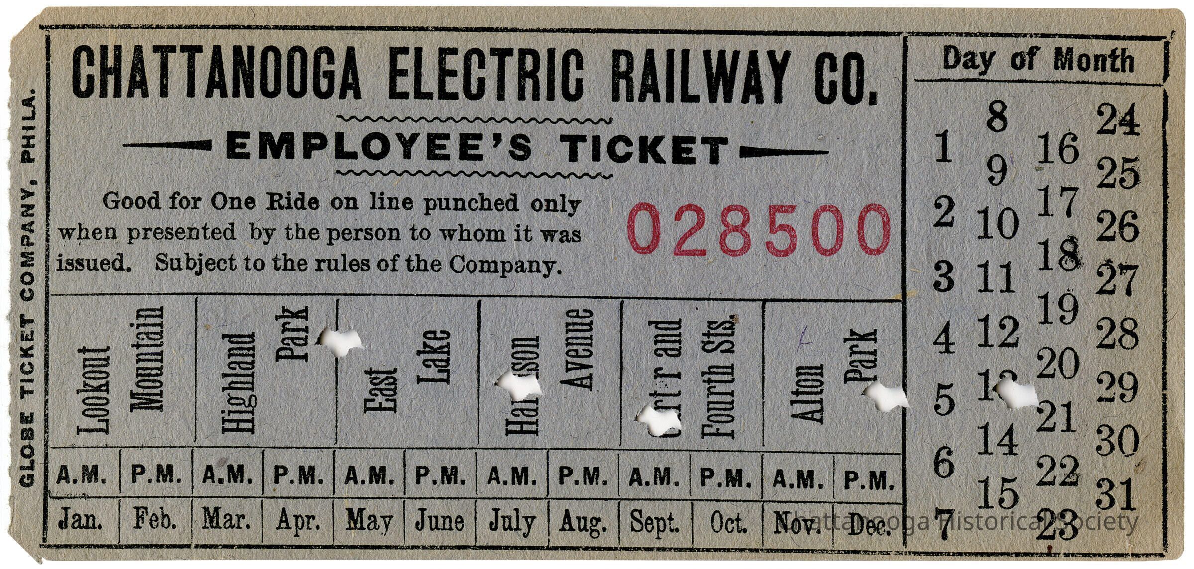 Employee's ticket for transportation on Chattanooga Electric Railway Company.Relationships