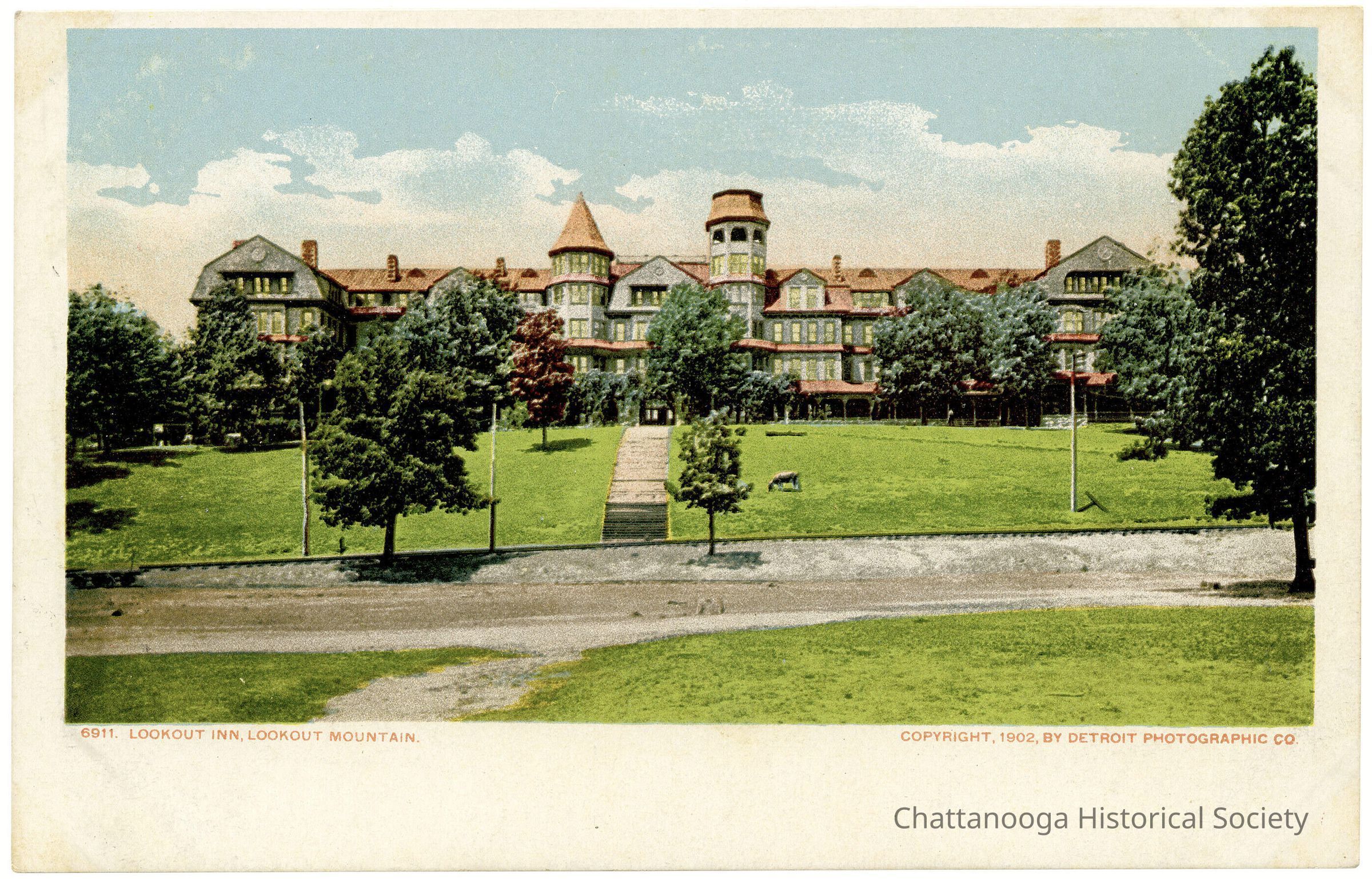 Color tinted postcard (a colorized version of 2020.494.001) of the Lookout Inn on Lookout Mountain, TNCreator