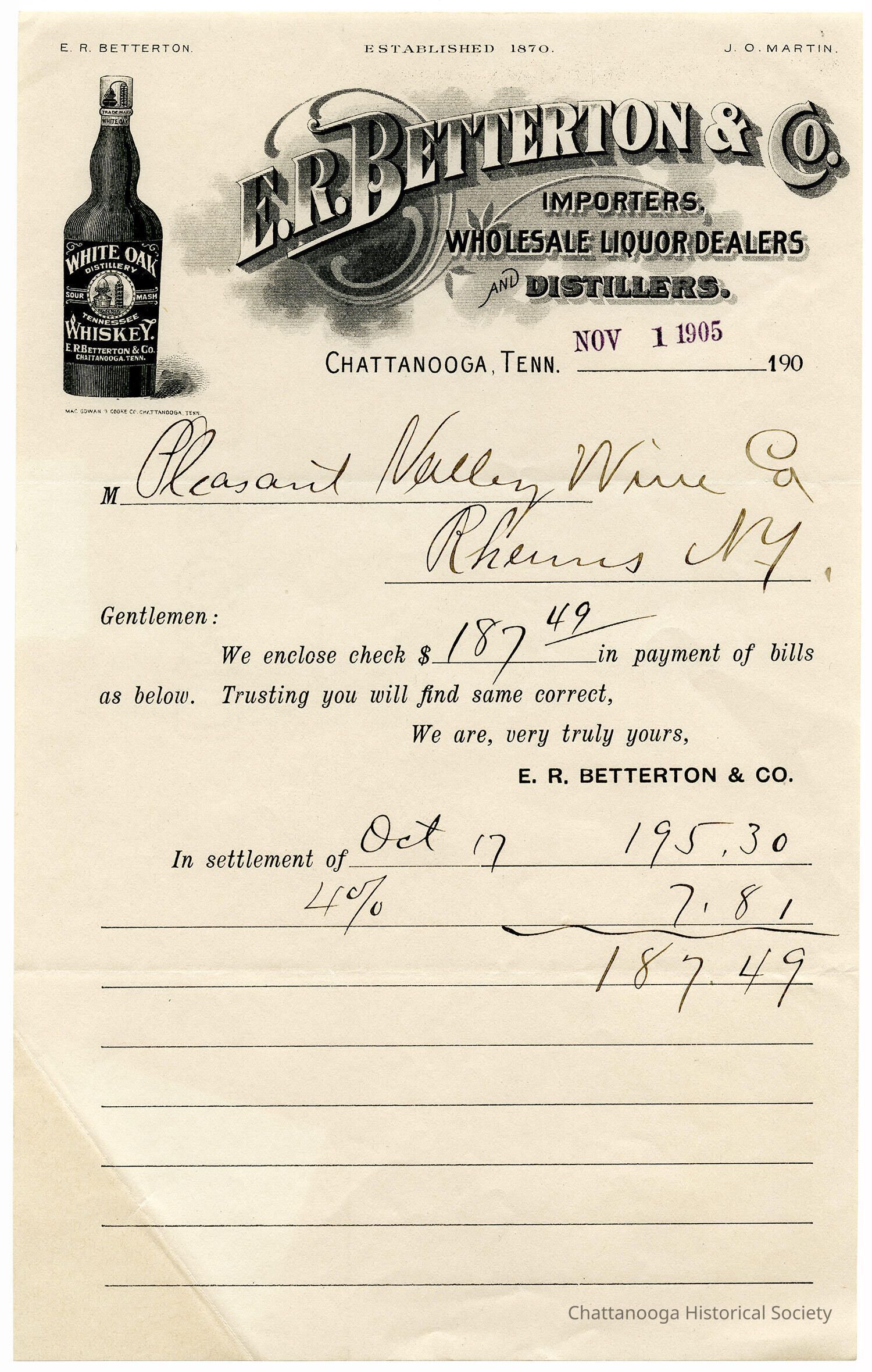 E. R. Betterton & Co, White Oak WhiskeyEntry/Object ID