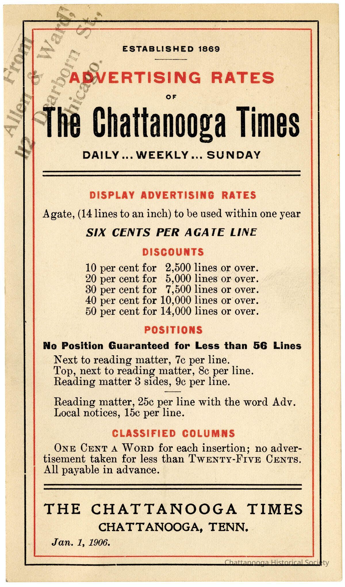 Advertising Rates of the Chattanooga Times, 1906Entry/Object ID
