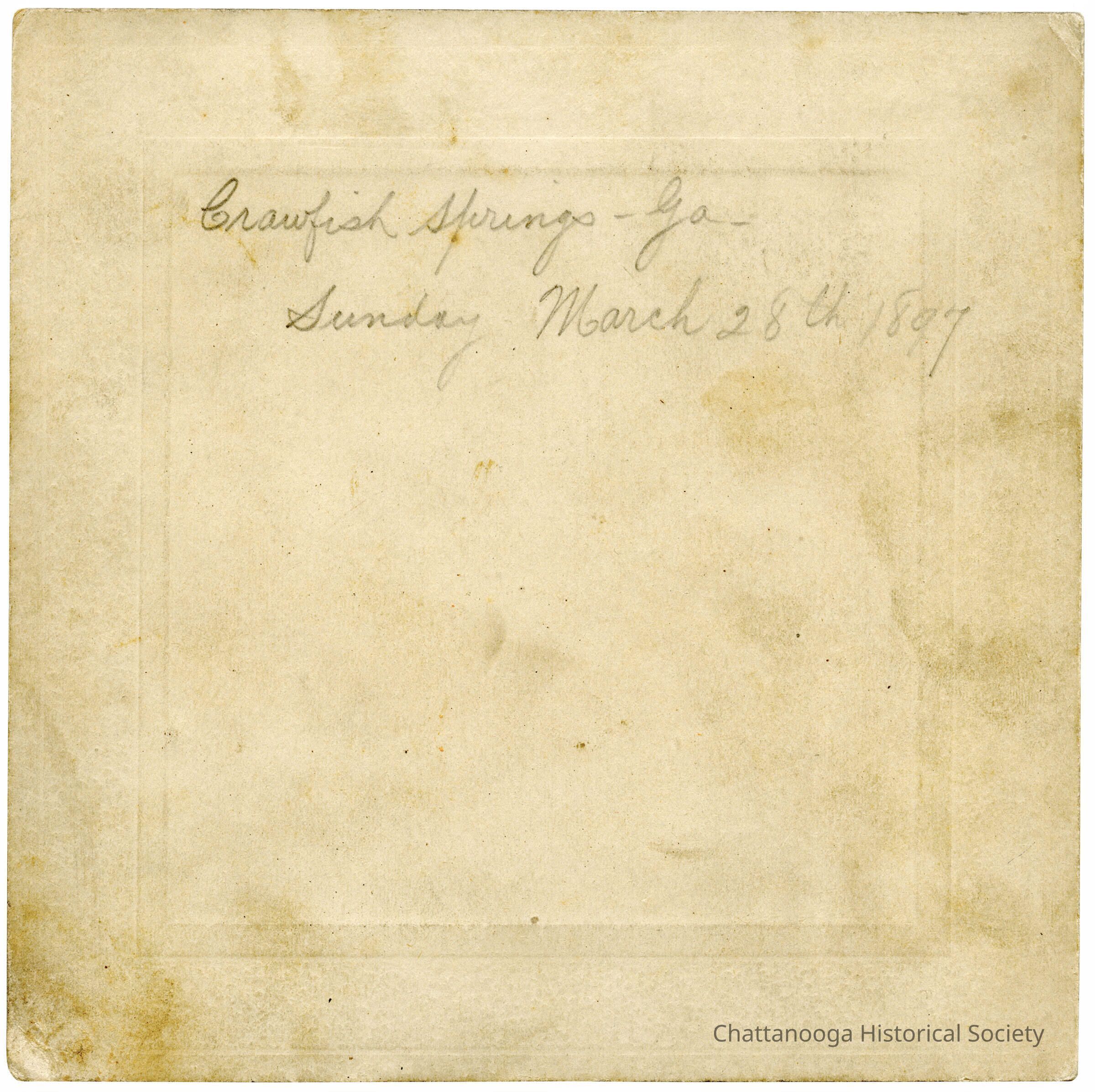 Handwritten on the verso is, "Crawfish Springs, GA Sunday March 28th, 1897." Crawfish Springs is the original name given to the town of Chickamagua, GA.Photograph Details