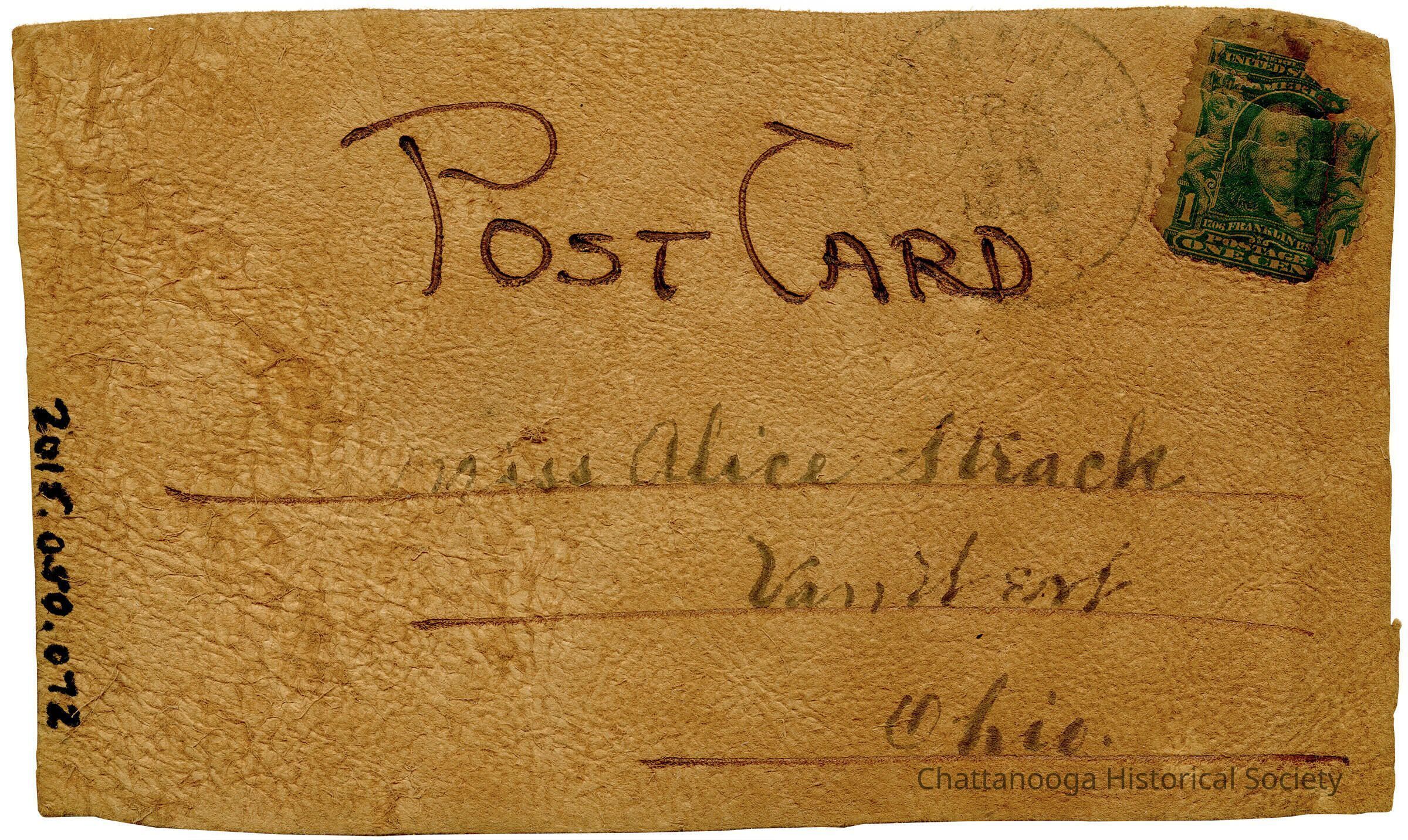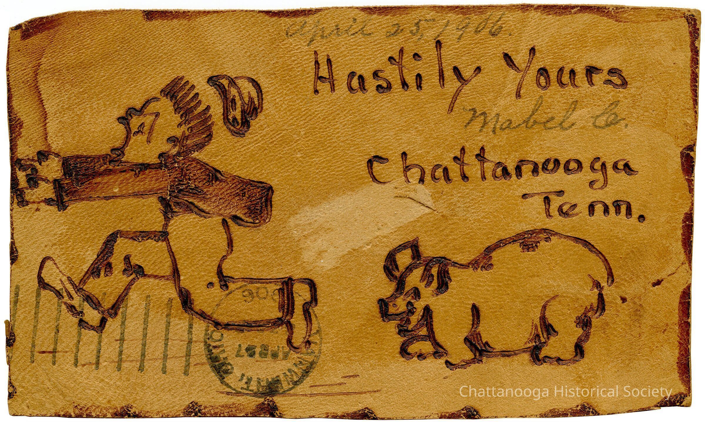 Hastily Yours, Chattanooga Tennessee, Leather PostcardEntry/Object ID