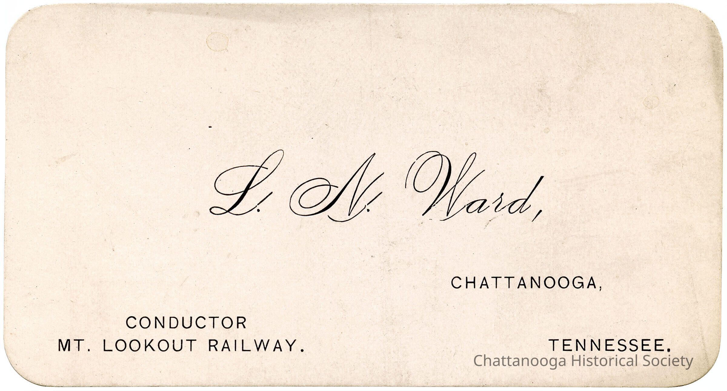 A calling card for L. N. Ward of Chattanooga, a conductor for the Mt. (Mountain) Lookout Railway.Archive Items Details