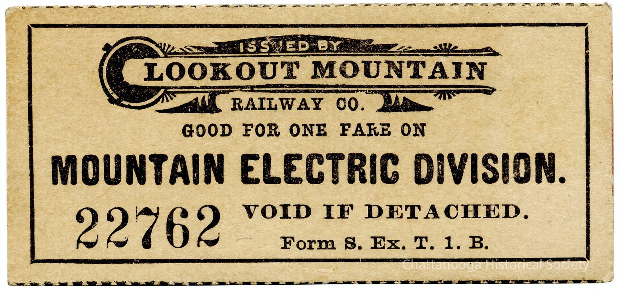 A ticket good for one fare on the Mountain Electric Division of the Lookout Mountain Railway Company.Archive Items Details