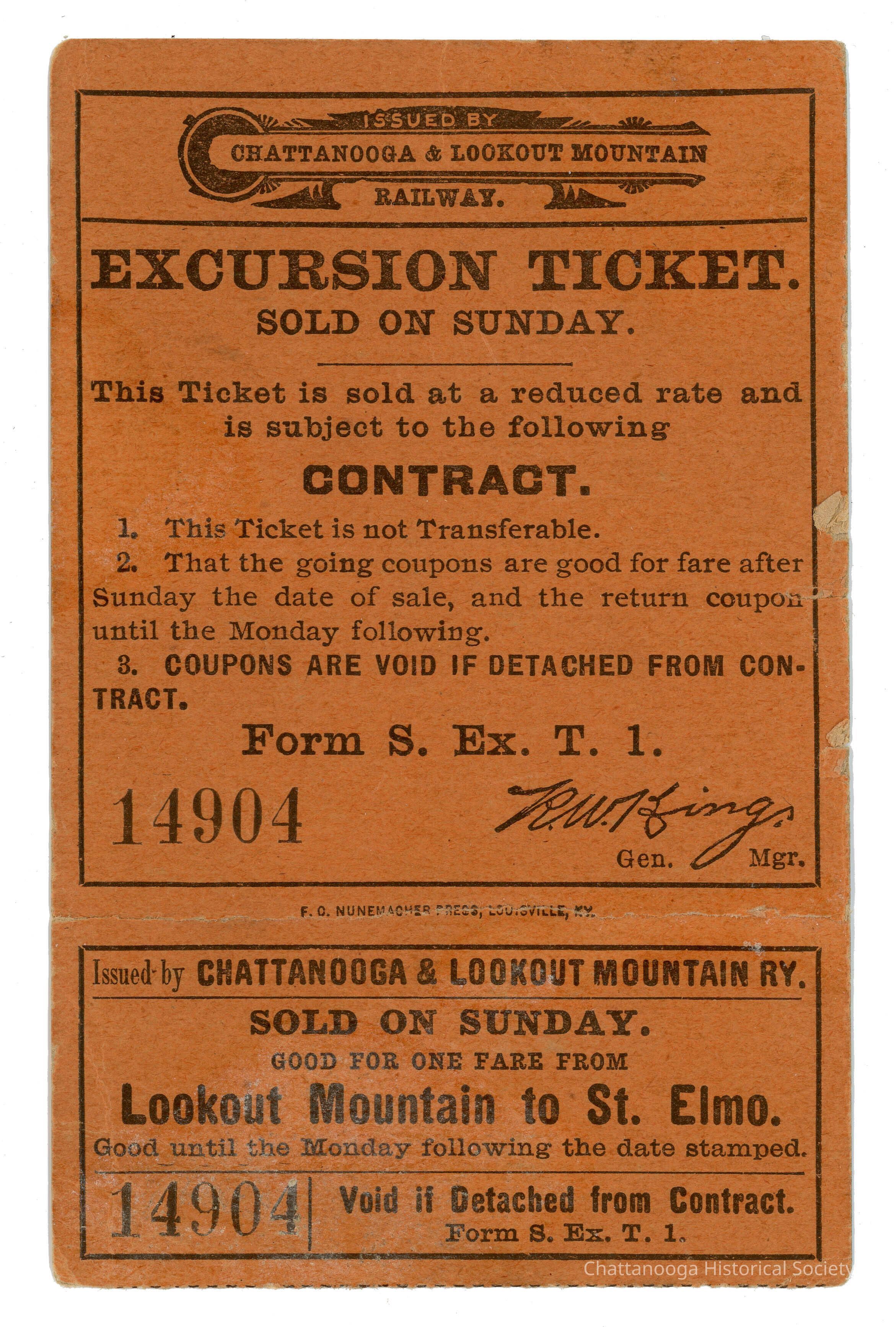 Lookout Mountain to St. Elmo, Excursion TicketEntry/Object ID