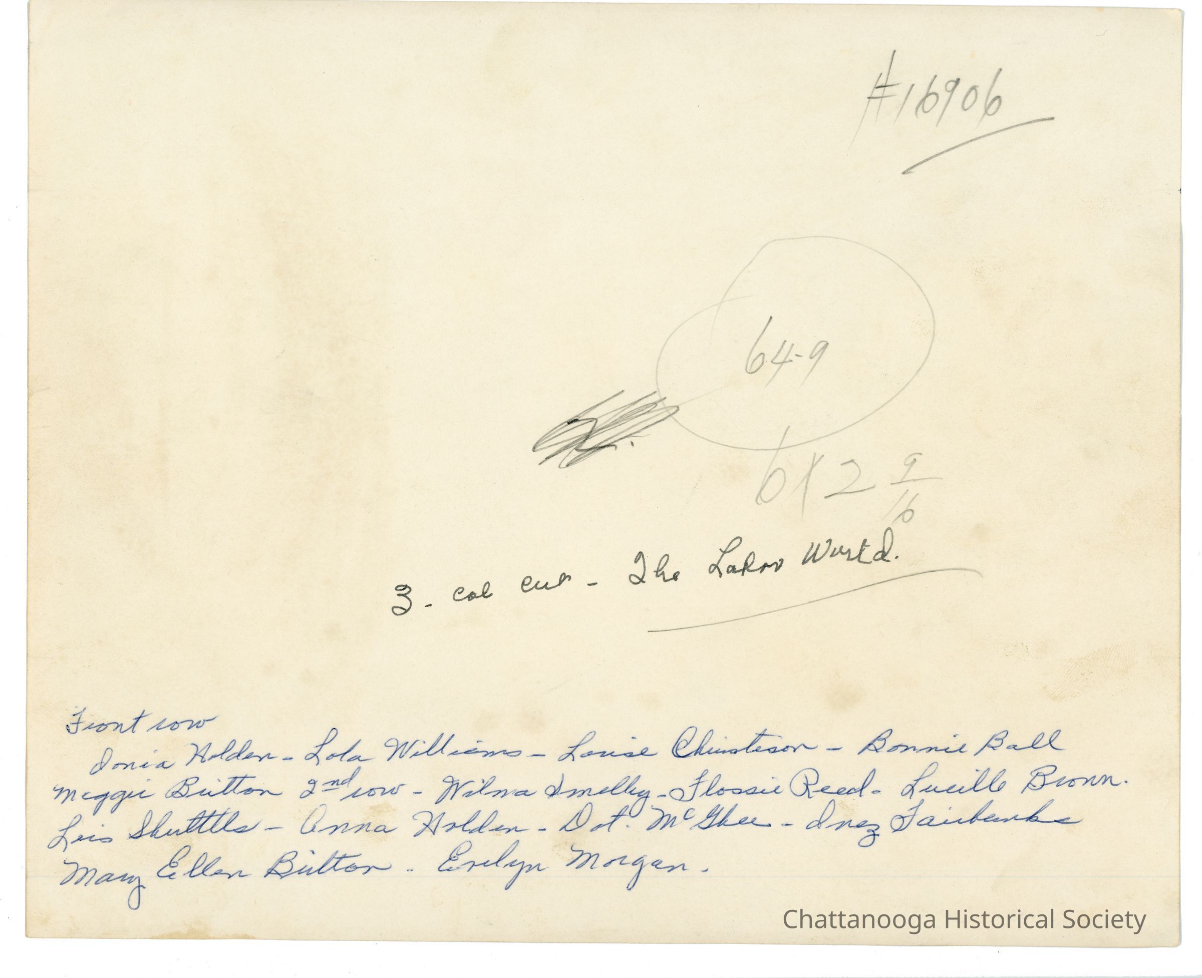Wilma Smalley, Flossie Reed, Lucille Brown, Louise Shuttles, Anna Holden, Dot McGhee, Inez Fairbanks, Mary Ellen Britton, Evelyn MorganPhotograph Details