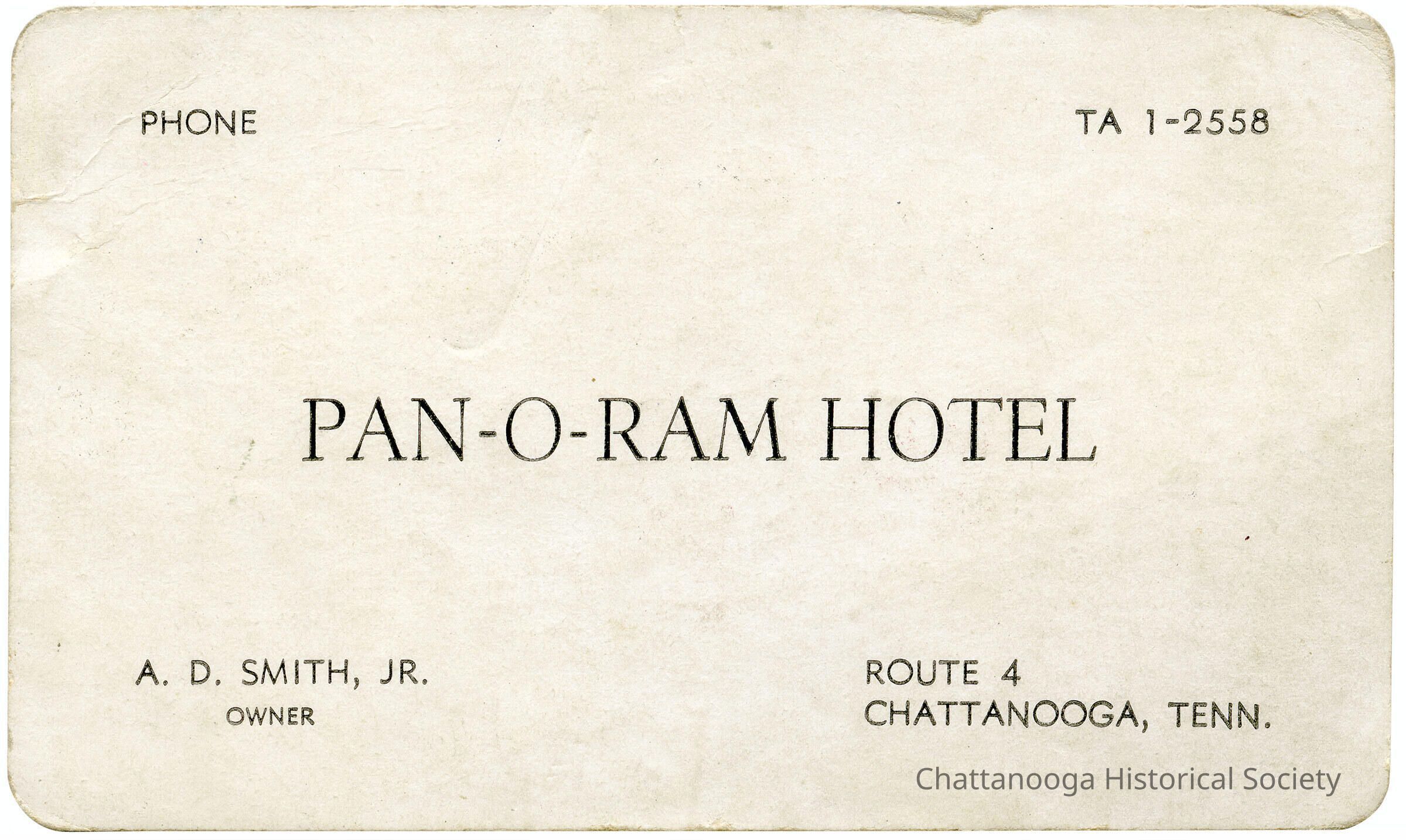 A business card of the Pan-O-Ram Hotel.