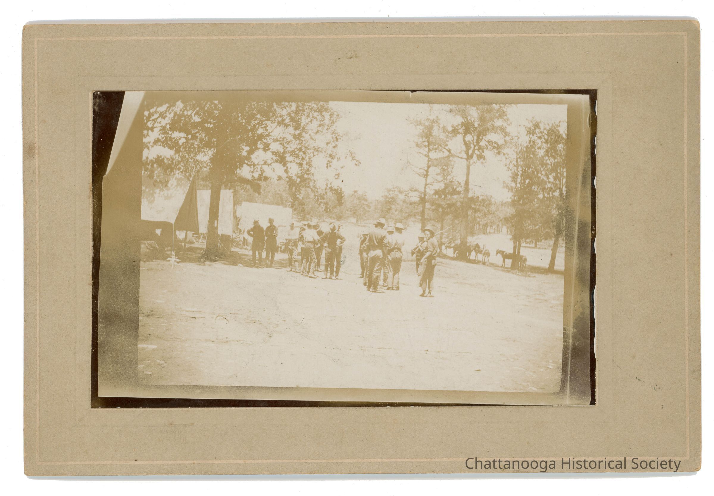 The rear of the photograph reads "Prisoners, Chickamauga Park." which may be in reference to himself and fellow servicemen as no reference to prisoners of war at Camp Thomas during the Spanish American War can be found at this time.Photograph Details