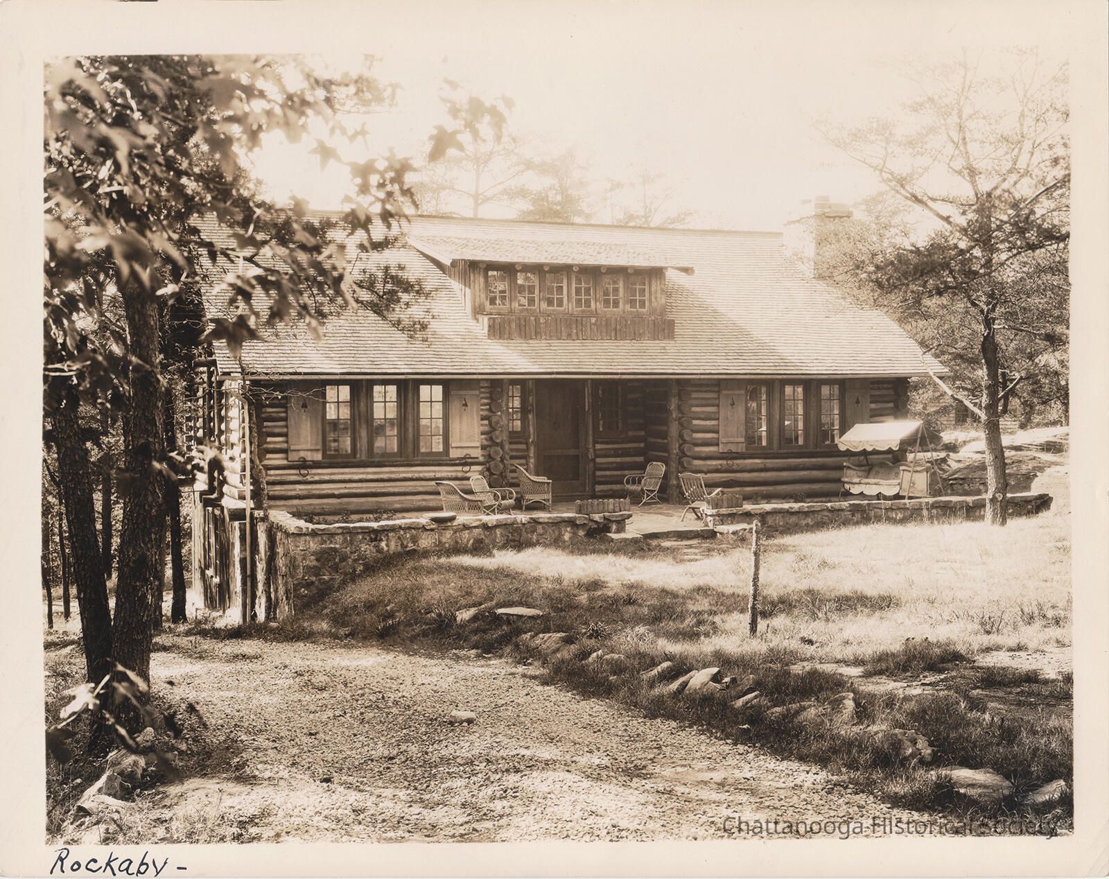 The photograph is labeled "Rockaby-" and is likely one of the houses designed by Frieda Carter and located in Fairyland, Lookout Mountain, GA (likely 1427 Wood Nymph Trail)Photograph Details