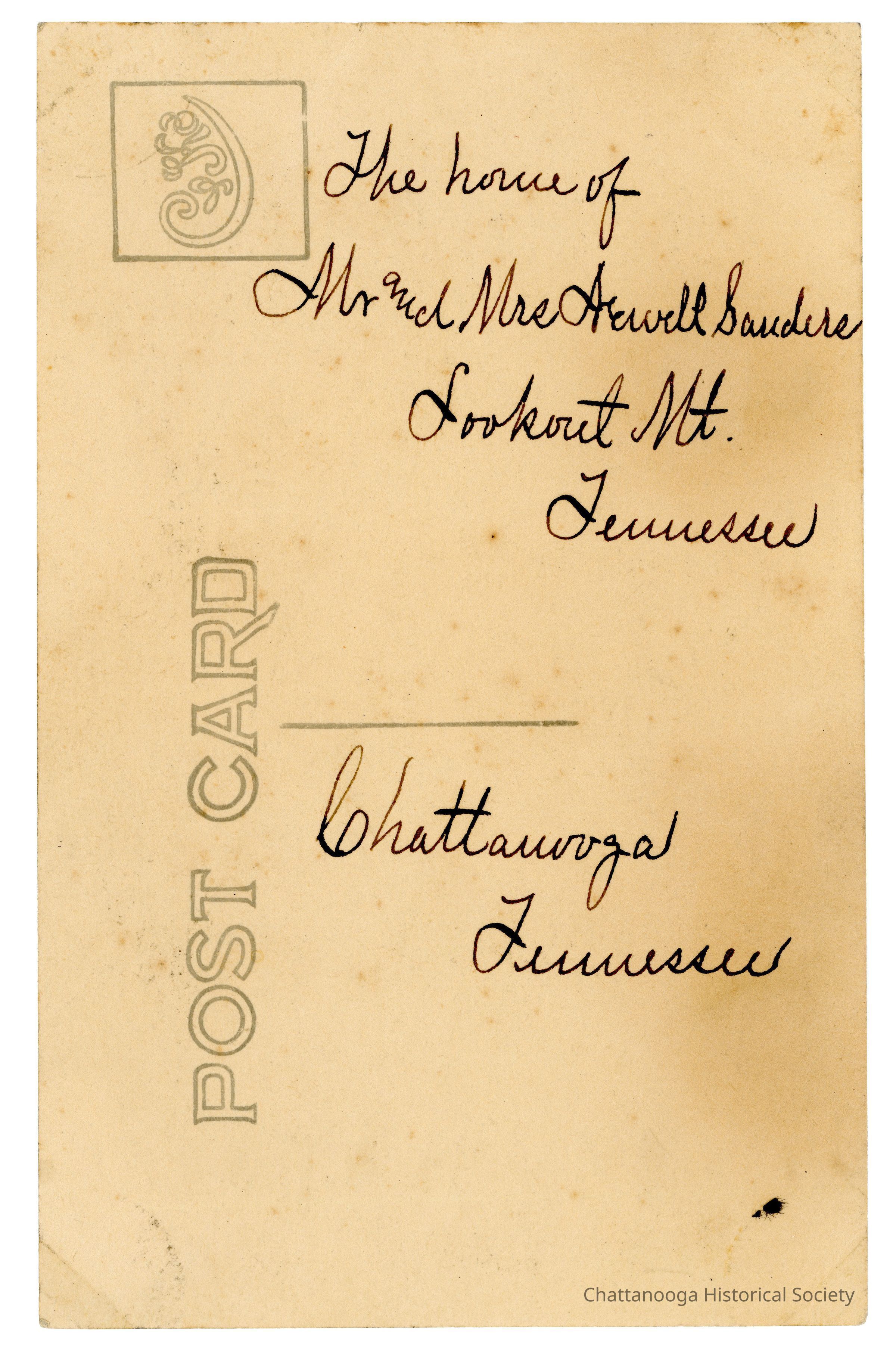 Handwritten on the vers: "The home of | Mr and Mrs Newell Sanders | Lookout Mt. | Tennessee | Chattanooga | Tennessee"Photograph Details
