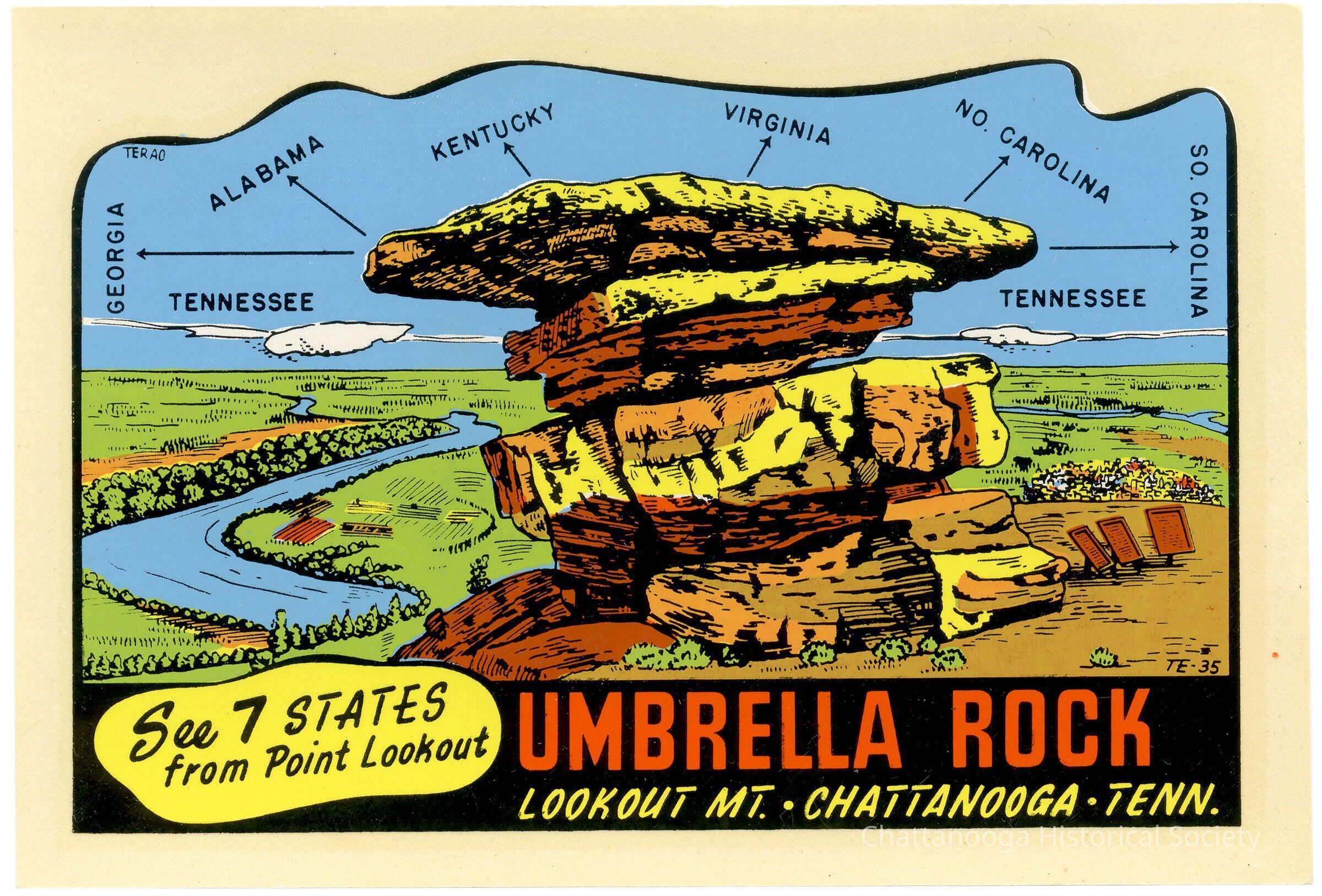 A souvenir decal of Umbrella Rock on Lookout Mountain, Tennessee.