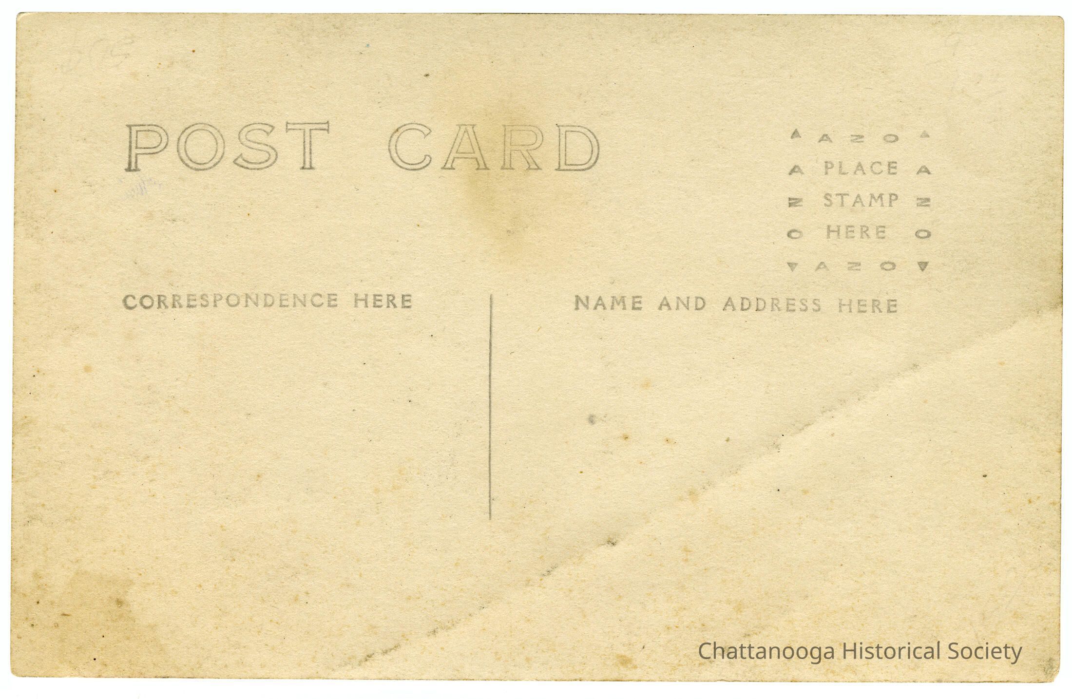 A gelatin-silver printed postcard with the front showing a photograph of a streetcar traveling down the Chattanooga Traction Company's line at the base of Walden's Ridge on Signal Mountain, Tennessee.