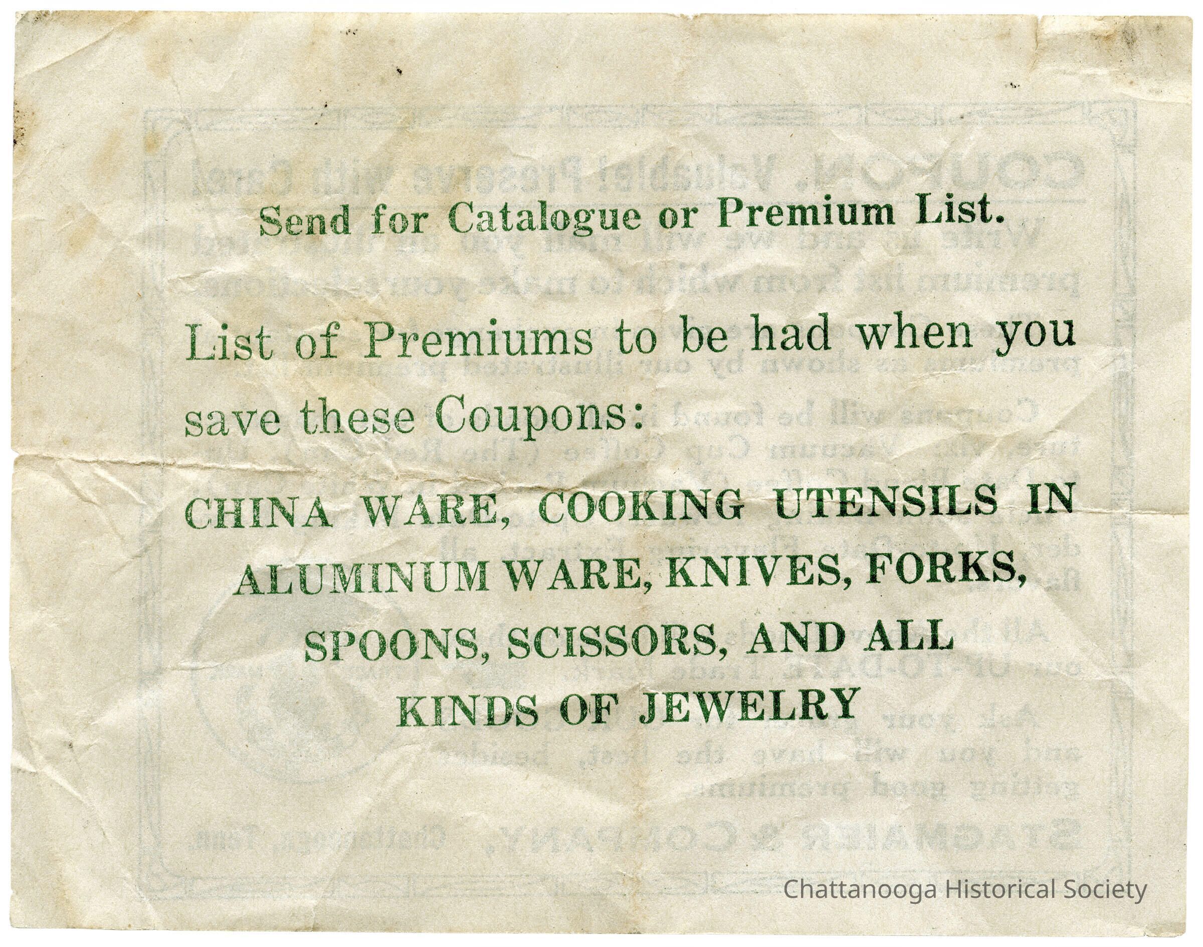 List of Premiums to be had when you save these Coupons: