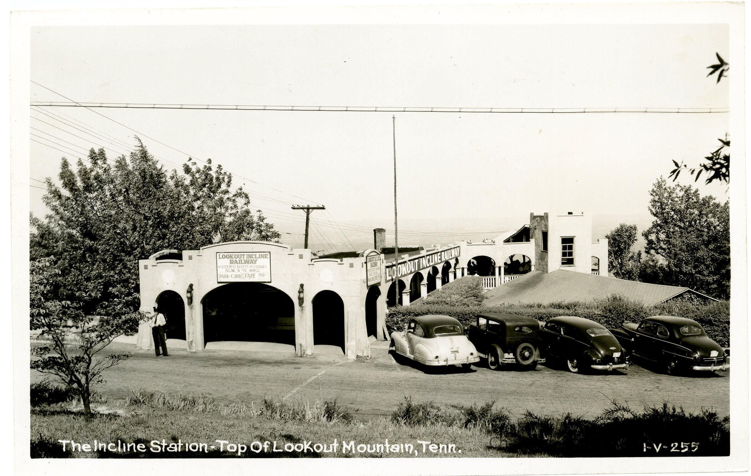 A postcard with the front showing a photograph of the Incline Station of Incline No. 2 atop Lookout Mountain.Subject Person/Organization