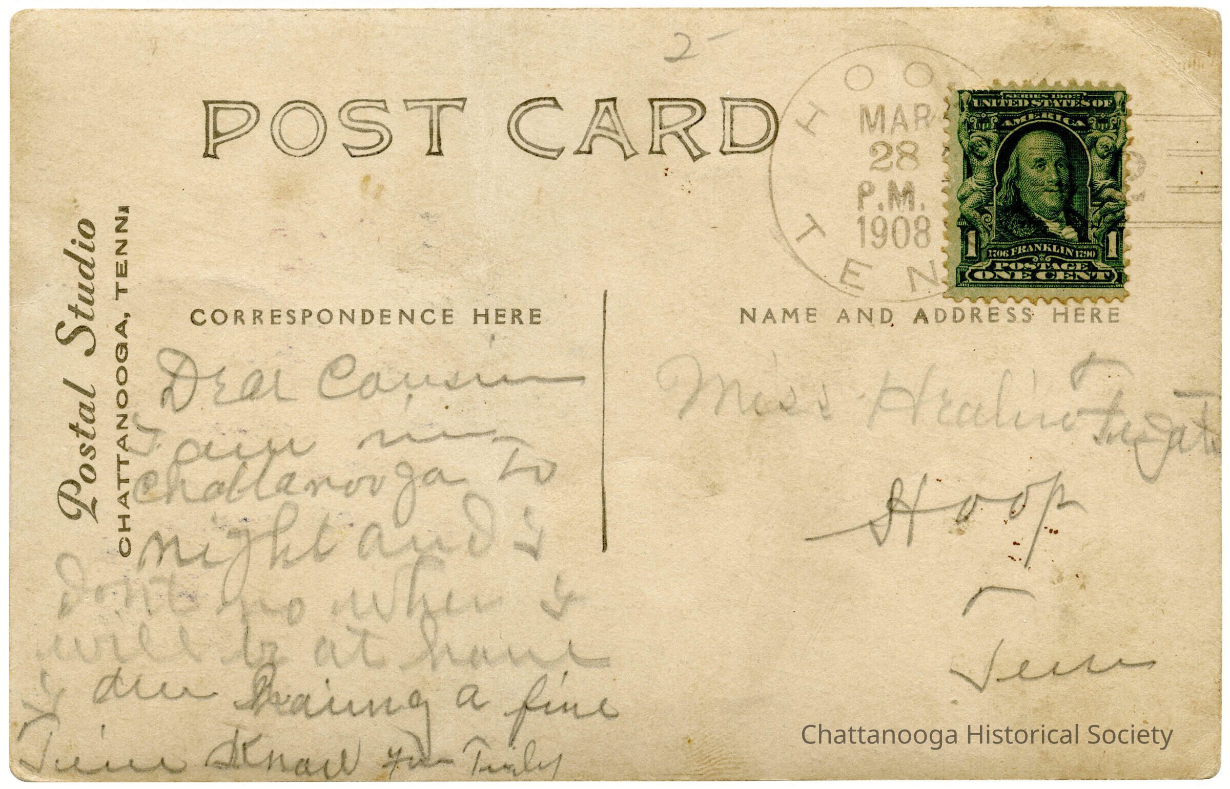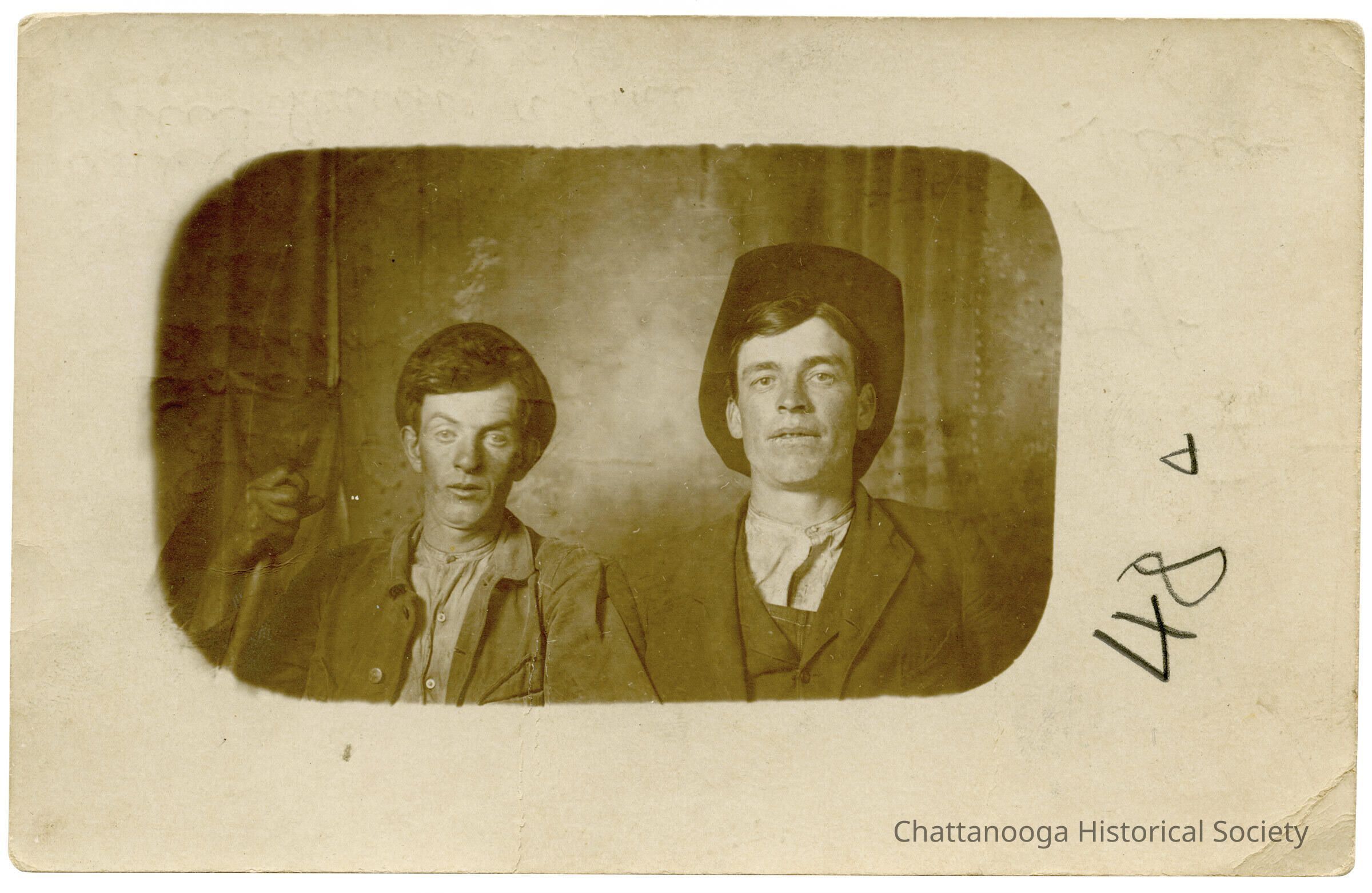 A postcard with the front showing a portrait of two young men taken at Postal Studio in Chattanooga, Tennessee.Collection