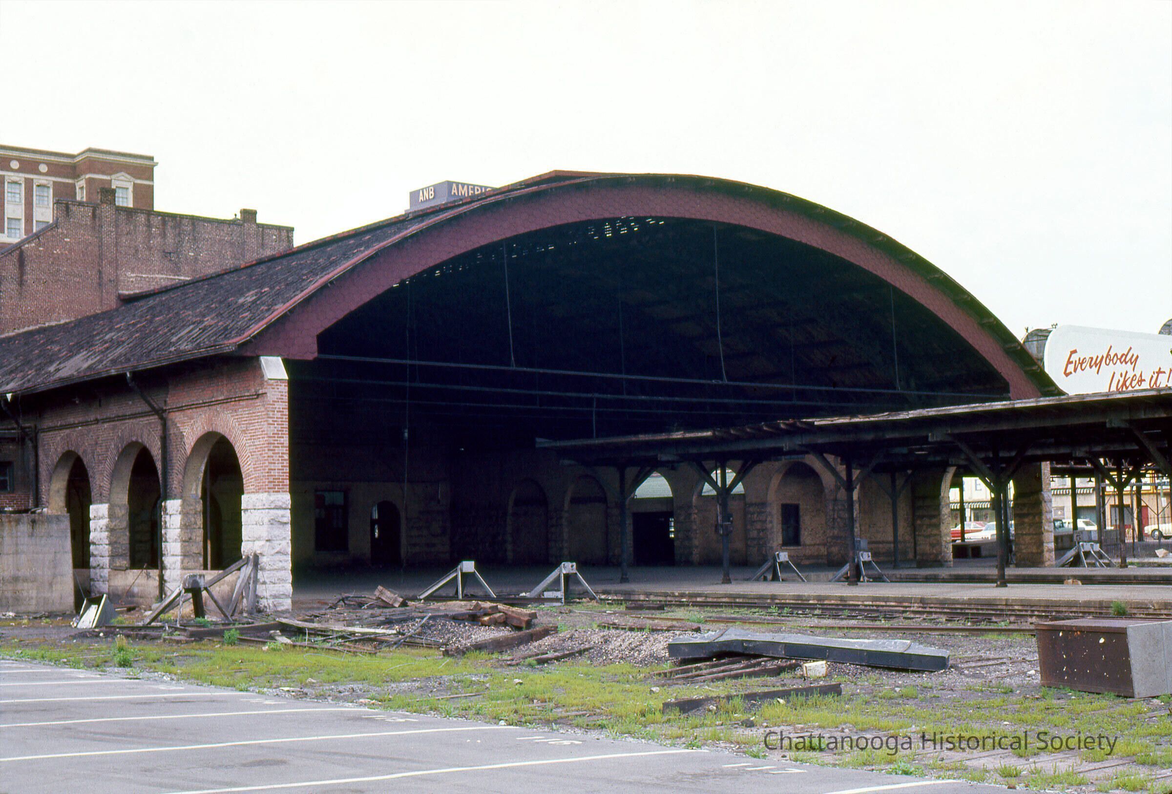 A rear view of the train sheds and platform at Union Station.Photograph Details