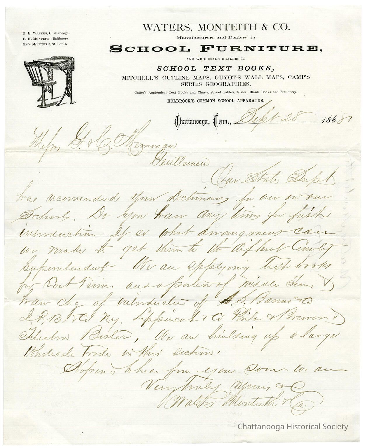 Correspondence from the Waters, Monteith & Co., manufactures and dealers in school furniture and text books.Archive Items Details