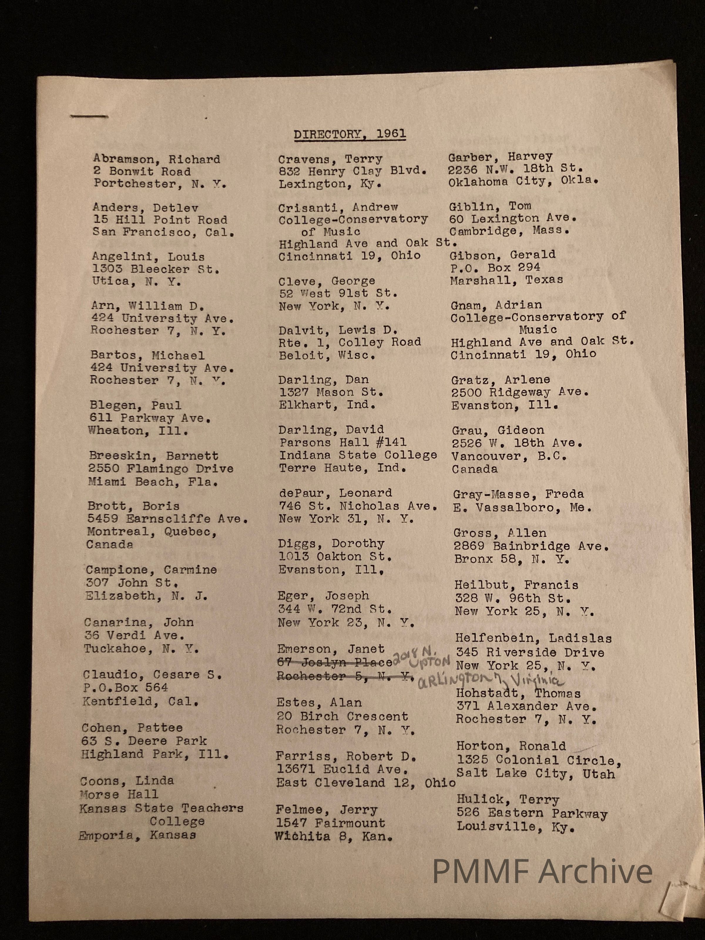 1961 Student List