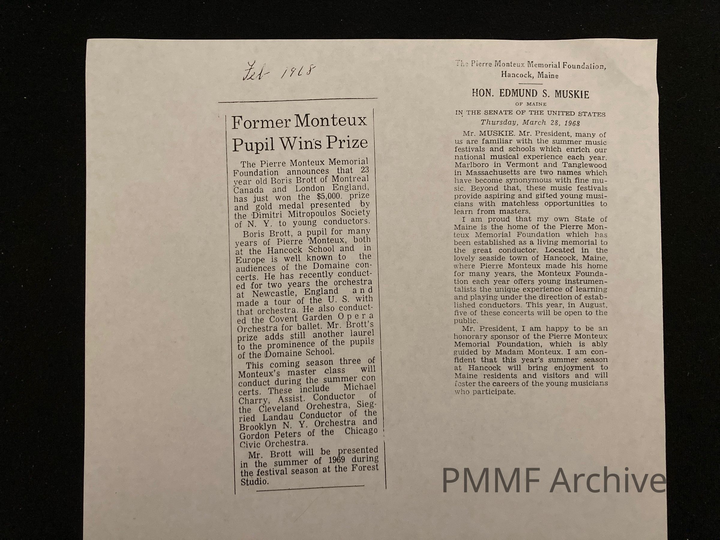 1968 Newspaper Articles about Pierre Monteux Memorial Foundation