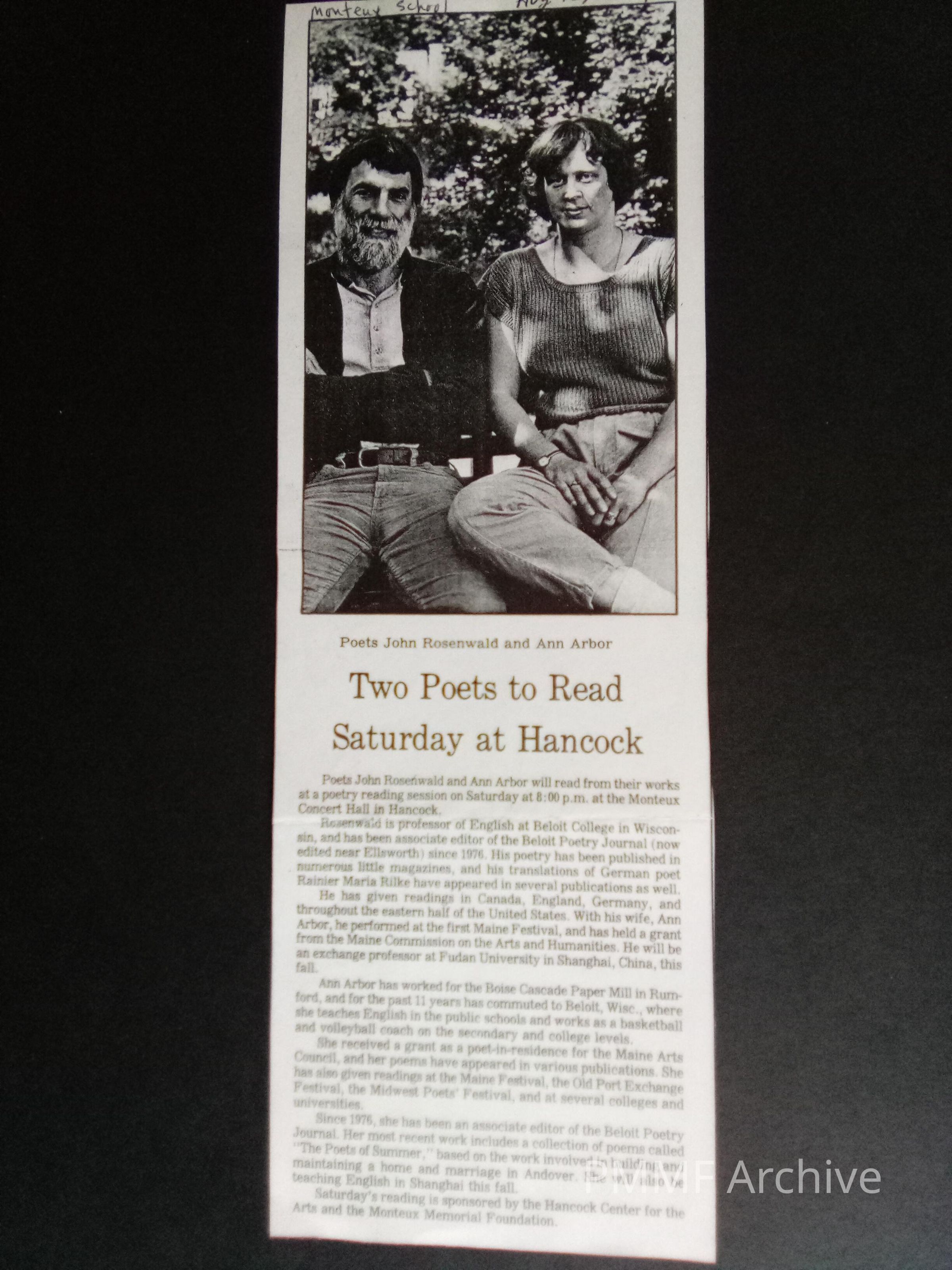1987 poetry reading at Monteux
