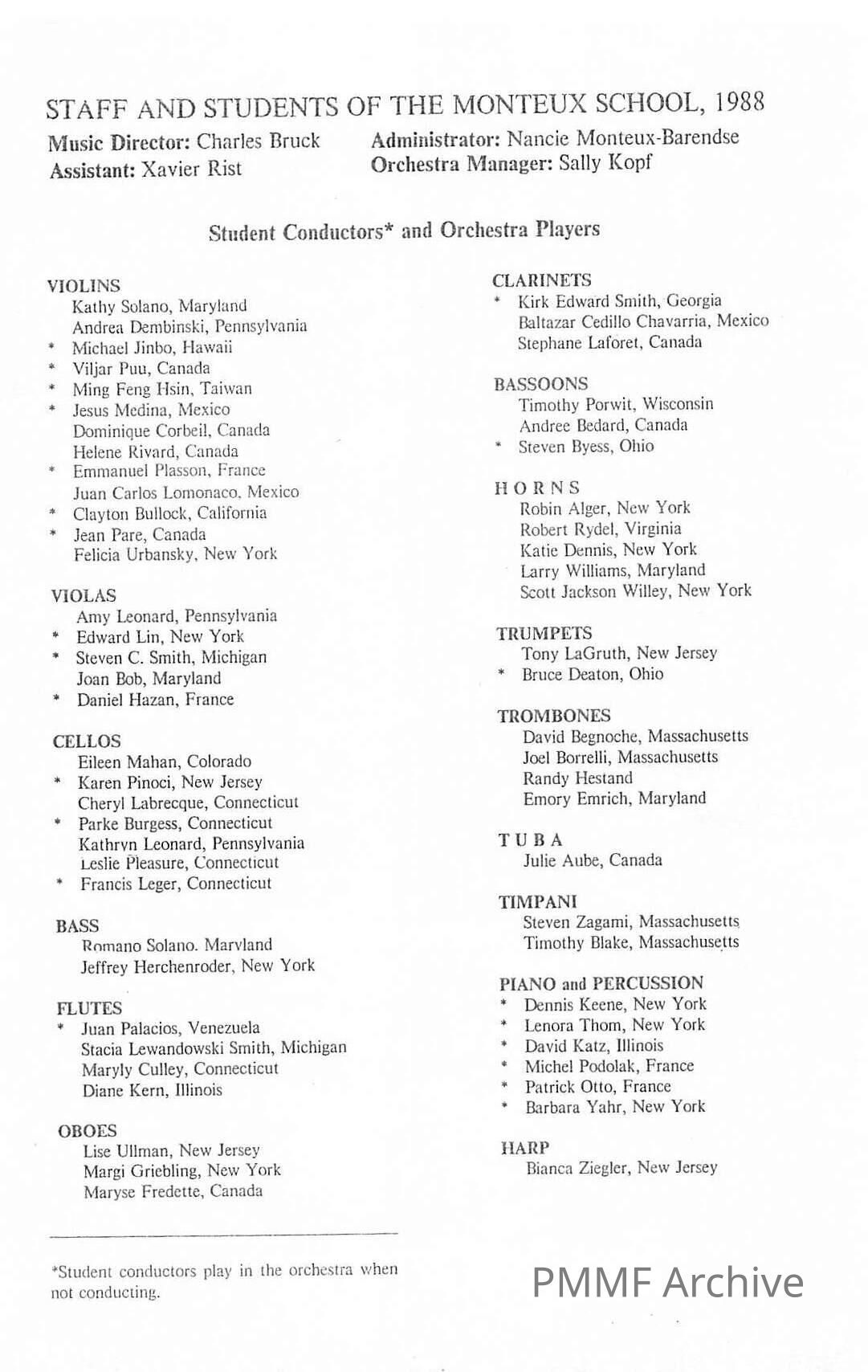 1988 Students and Concert ProgramsTags