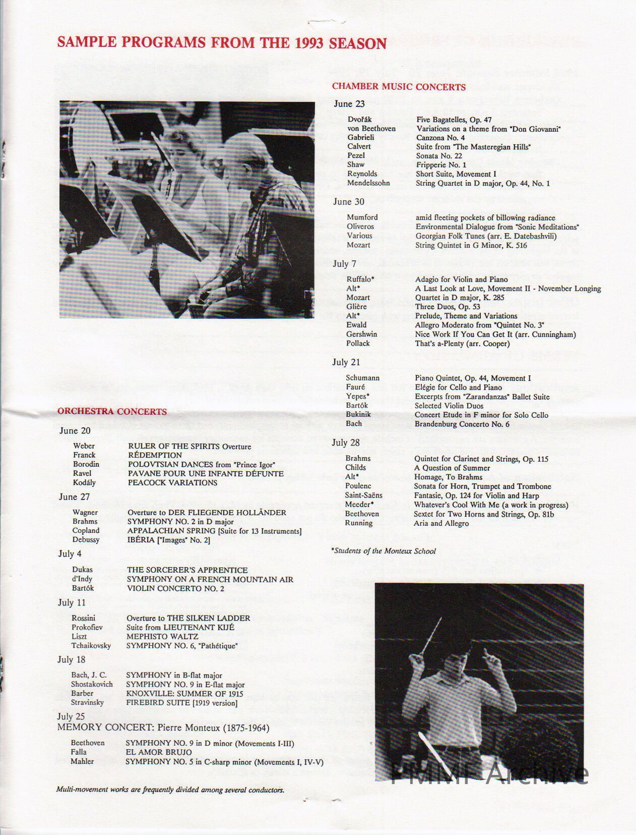 Missing Biographies, Missing Chamber Concert Program, Missing Orchestra Photo, Missing Conductor PhotoCollection