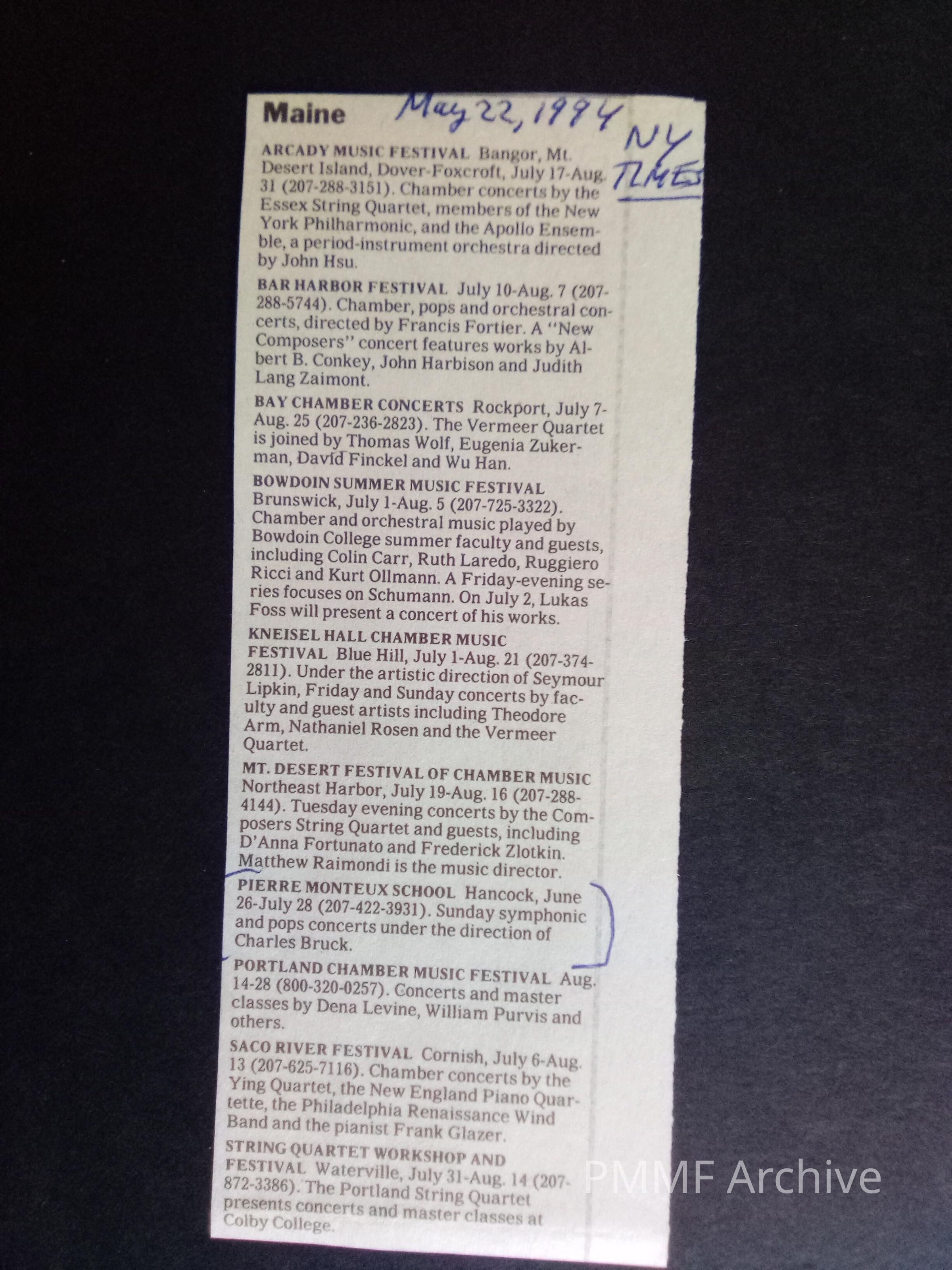 1994 NYT Maine concerts announcement