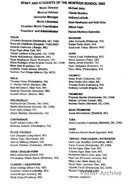 2002 Students, Concert Programs & Conductor BiographiesTags
