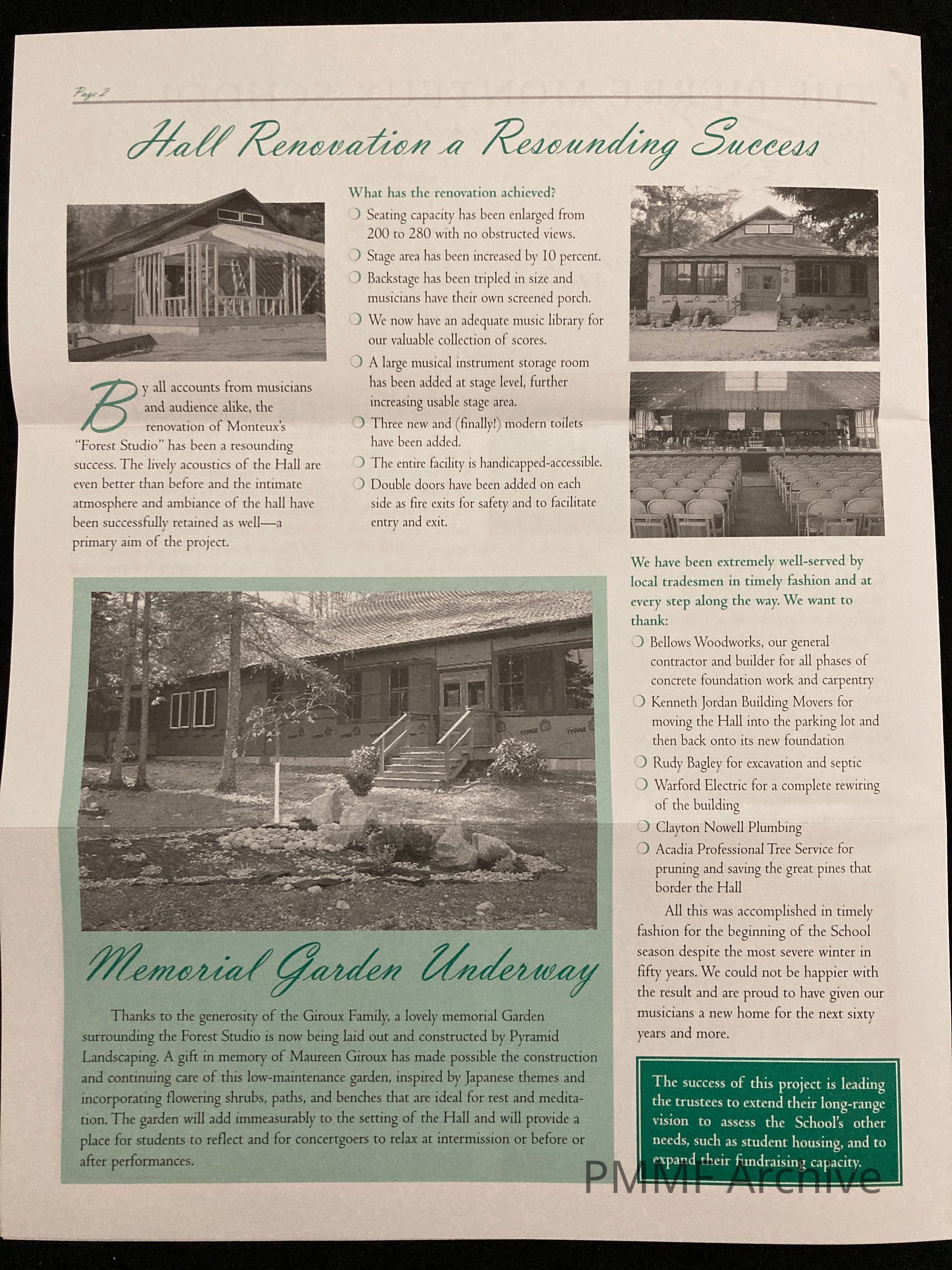 Fall 2003 Newsletter 60th Year – Features Hall Renovation