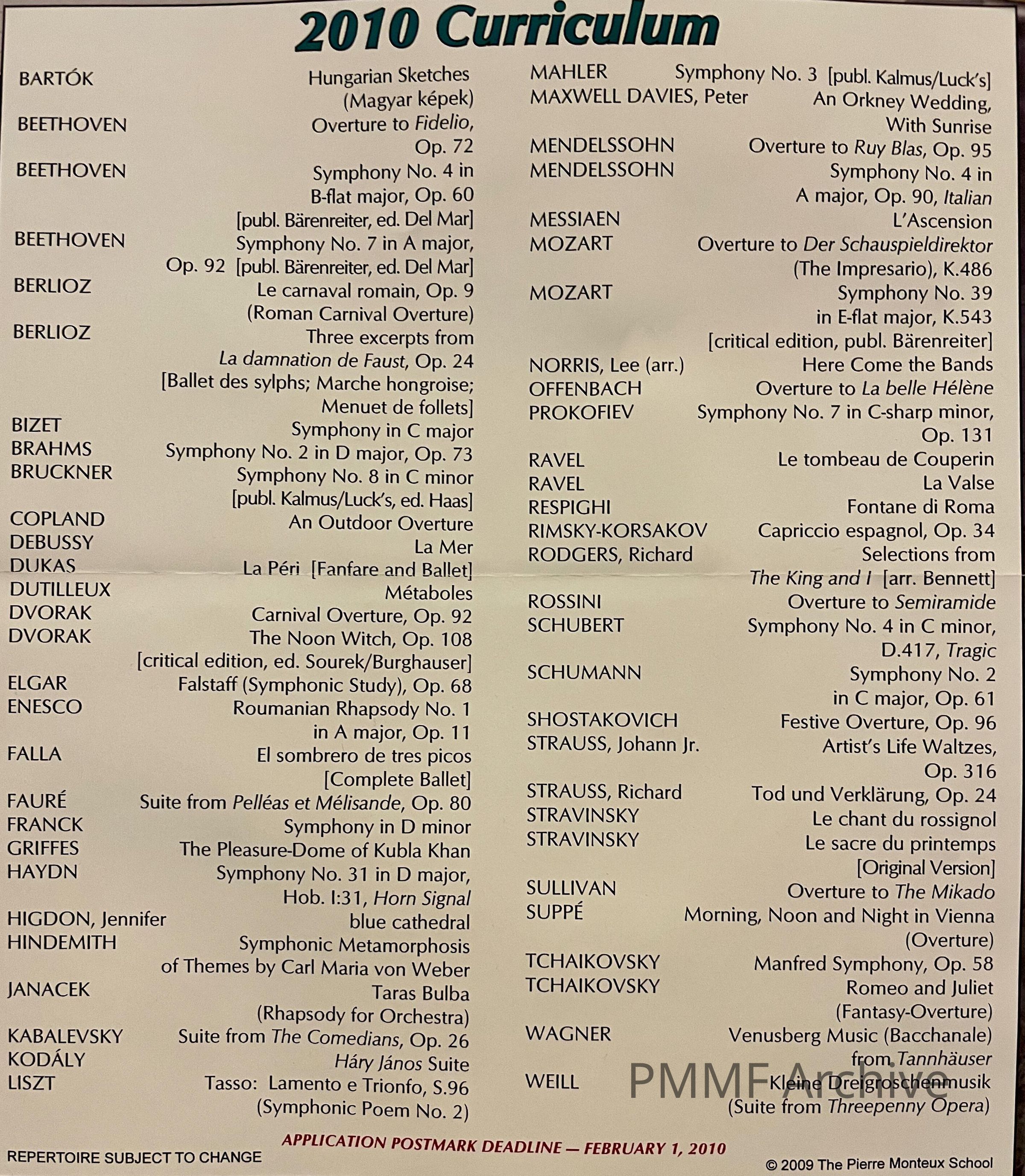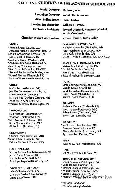 2010 Students, Concert Programs, Curriculum & Conductor BiographiesScope and Content