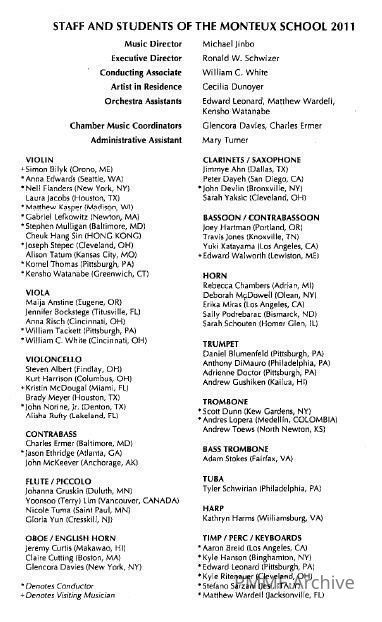 2011 Students, Repertoire, Concert Programs & Conductor BiographiesScope and Content