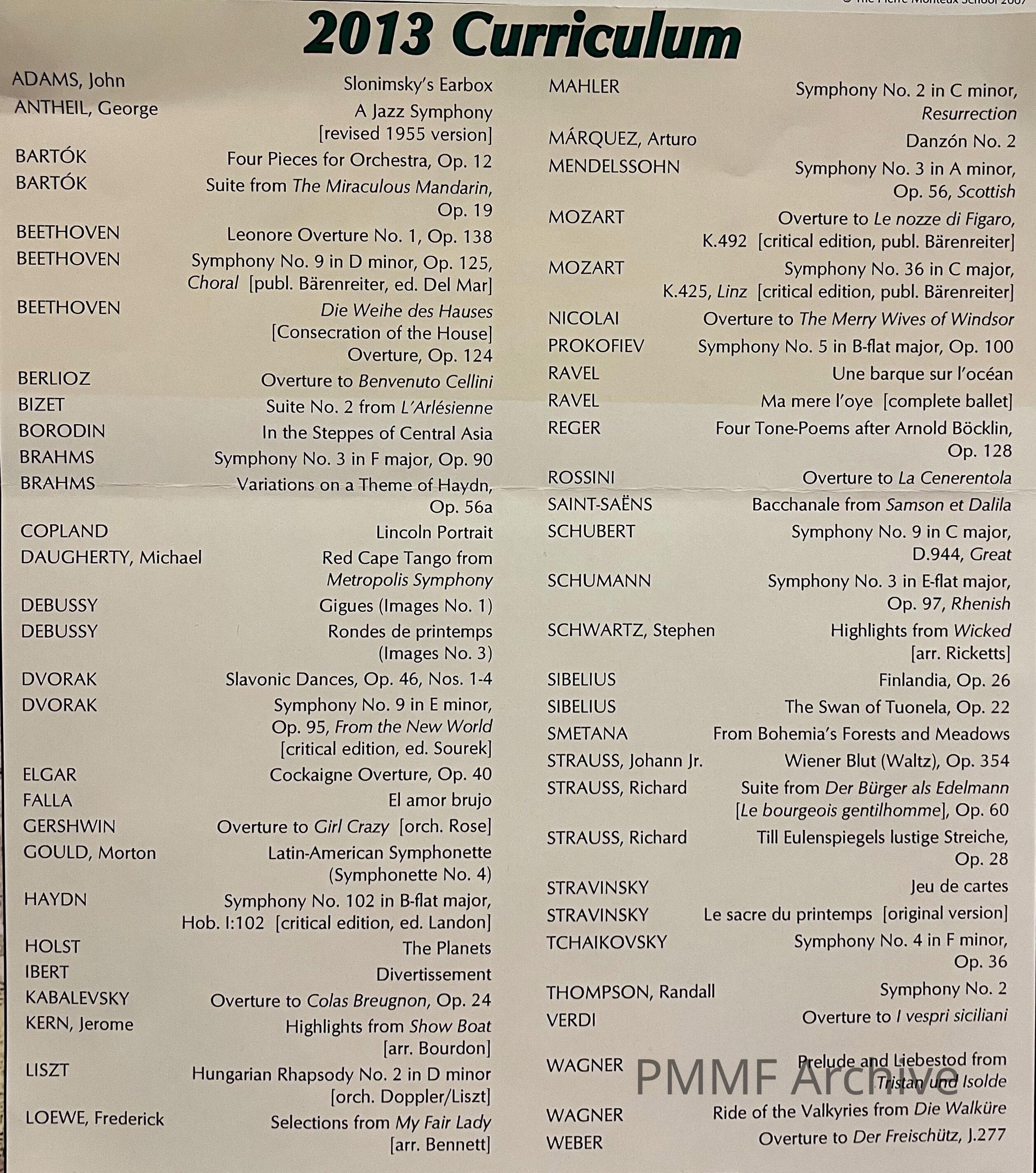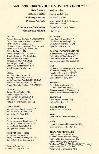 2013 Students, Concert Programs, Curriculum & Student BiographiesScope and Content