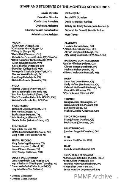2015 Students, Concert Programs & Curriculum