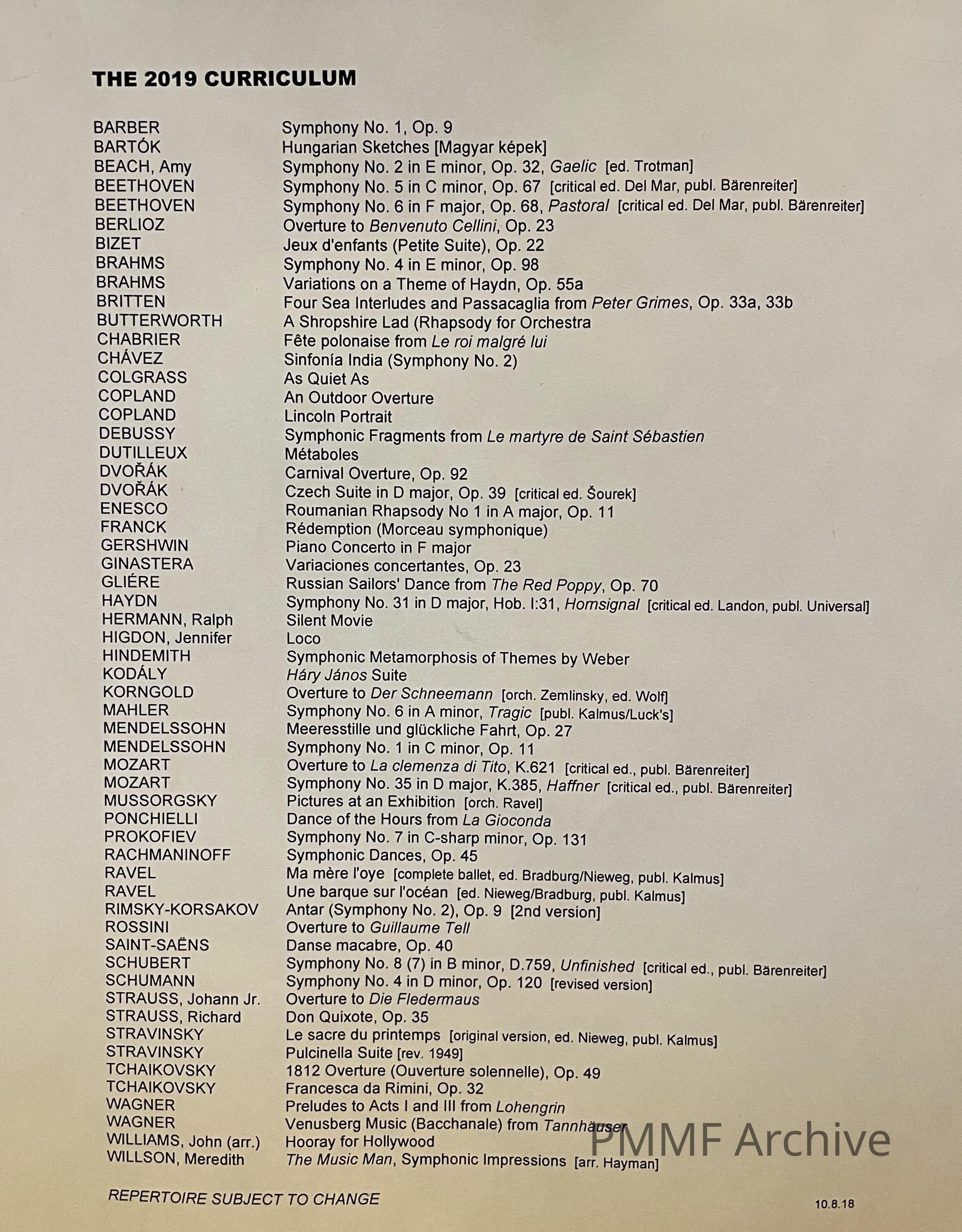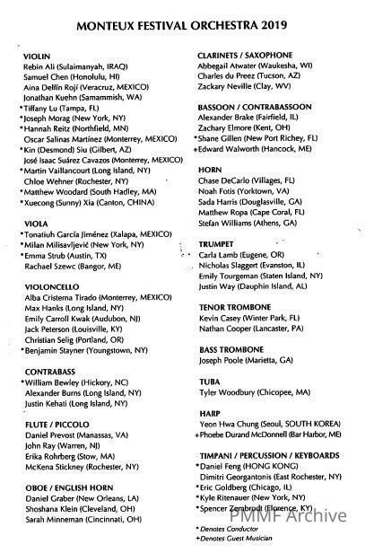 2019 Students, Concert Programs, Curriculum & Student Biographies