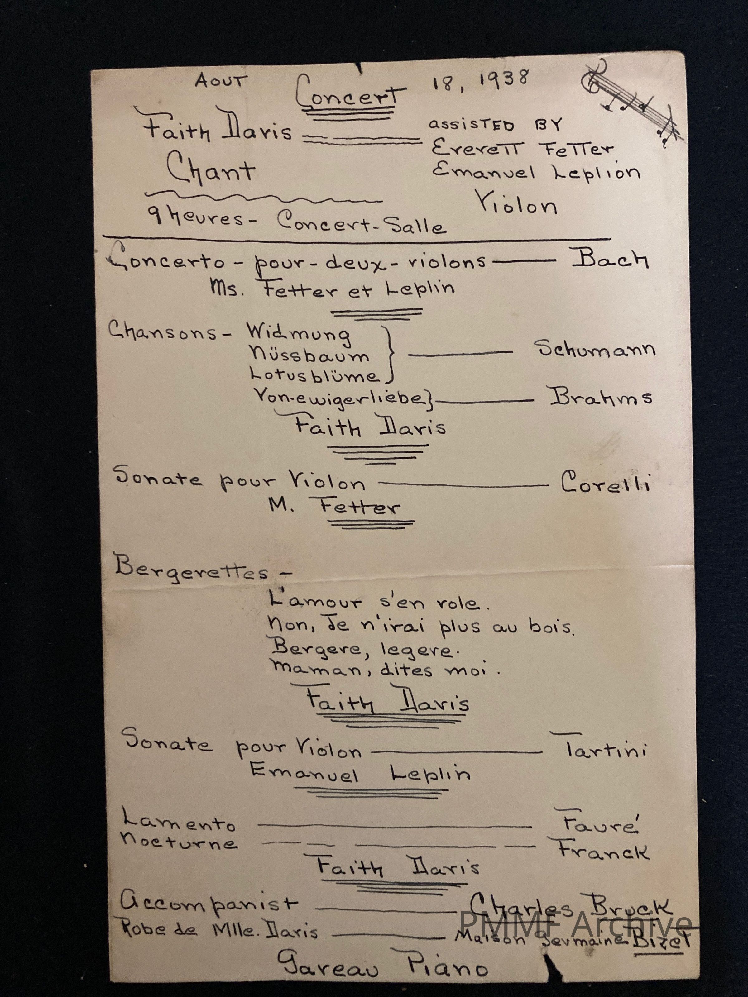 Faith Davis and Charles Bruck Concert Program, August 18, 1938